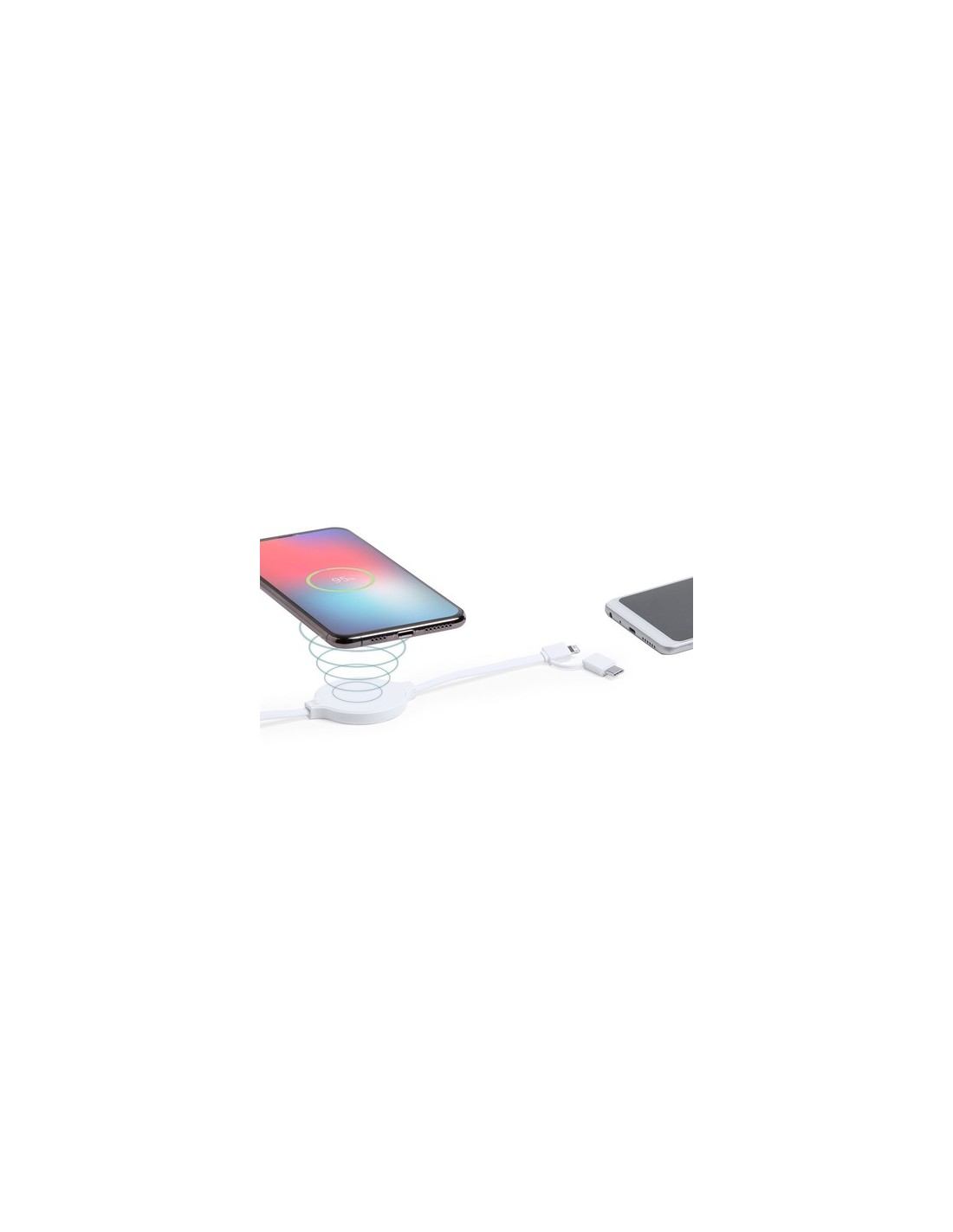 Cargador inalámbrico de diseño ultra compacto en diseño monocolor blanco. Conexión dual micro USB y Lightning, con adaptador Tipo C y luz indicadora de carga. Compatible con dispositivos equipados con tecnología de carga inalámbrica. Inalámbrico 5W. Conexión Micro USB, Tipo C y Lightning