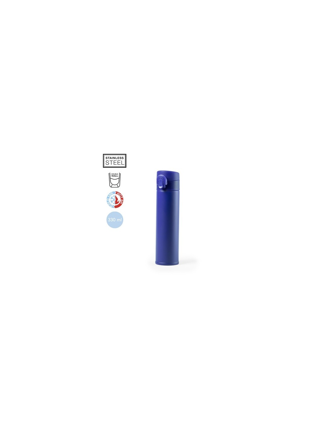 Termo en acero inox de 330ml de capacidad. Con doble cobertura para mejor y mas duradera conservación de la temperatura y con sistema de apertura fácil con botón. Disponible en variada gama de colores y presentado en atractiva caja de diseño. Disponible manual de instrucciones en español e inglés. 330 ml Composition : Acero Inox.