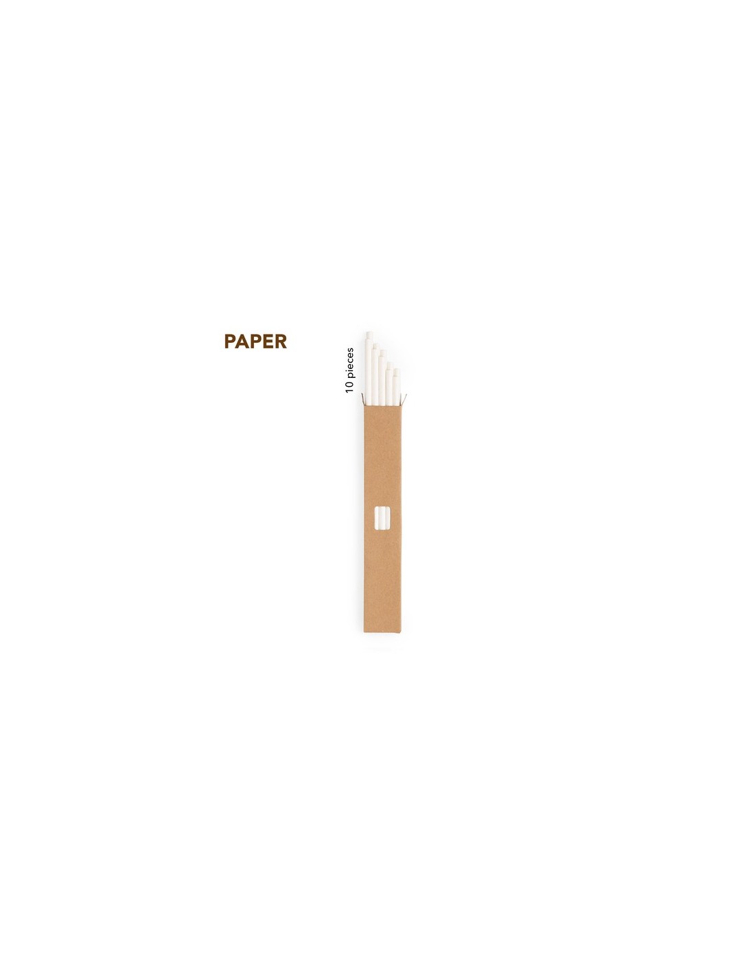 Set de pajitas de papel con tratamiento especial anti humedad. Compuesto por 10 pajitas, presentadas en estuche de cartón reciclado. Disponible en acabado natural y marrón. 10 Piezas Composition : Papel.