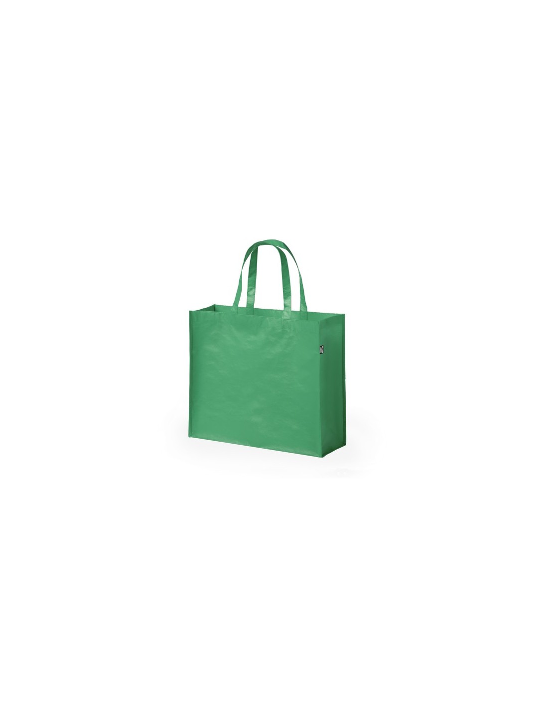 Bolsa de línea nature en material RPET, elaborado a partir de plástico reciclado, para así fomentar la reutilización de residuos plásticos y ayudar a la sostenibilidad del planeta. En material laminado de 105 g/m2 de acabado mate, con asas medianas y costuras y base reforzadas. Resistencia hasta 5 kg de peso. Disponible en variada gama de colores, con etiqueta distintivo RPET. Composition : Poliéster RPET Laminado.