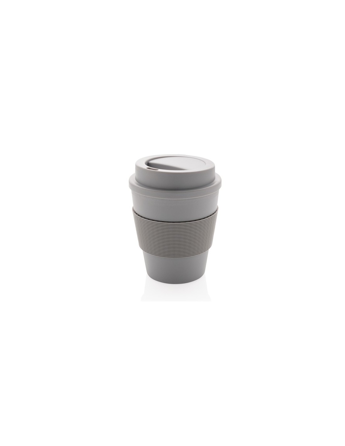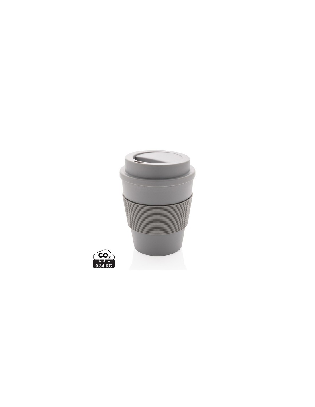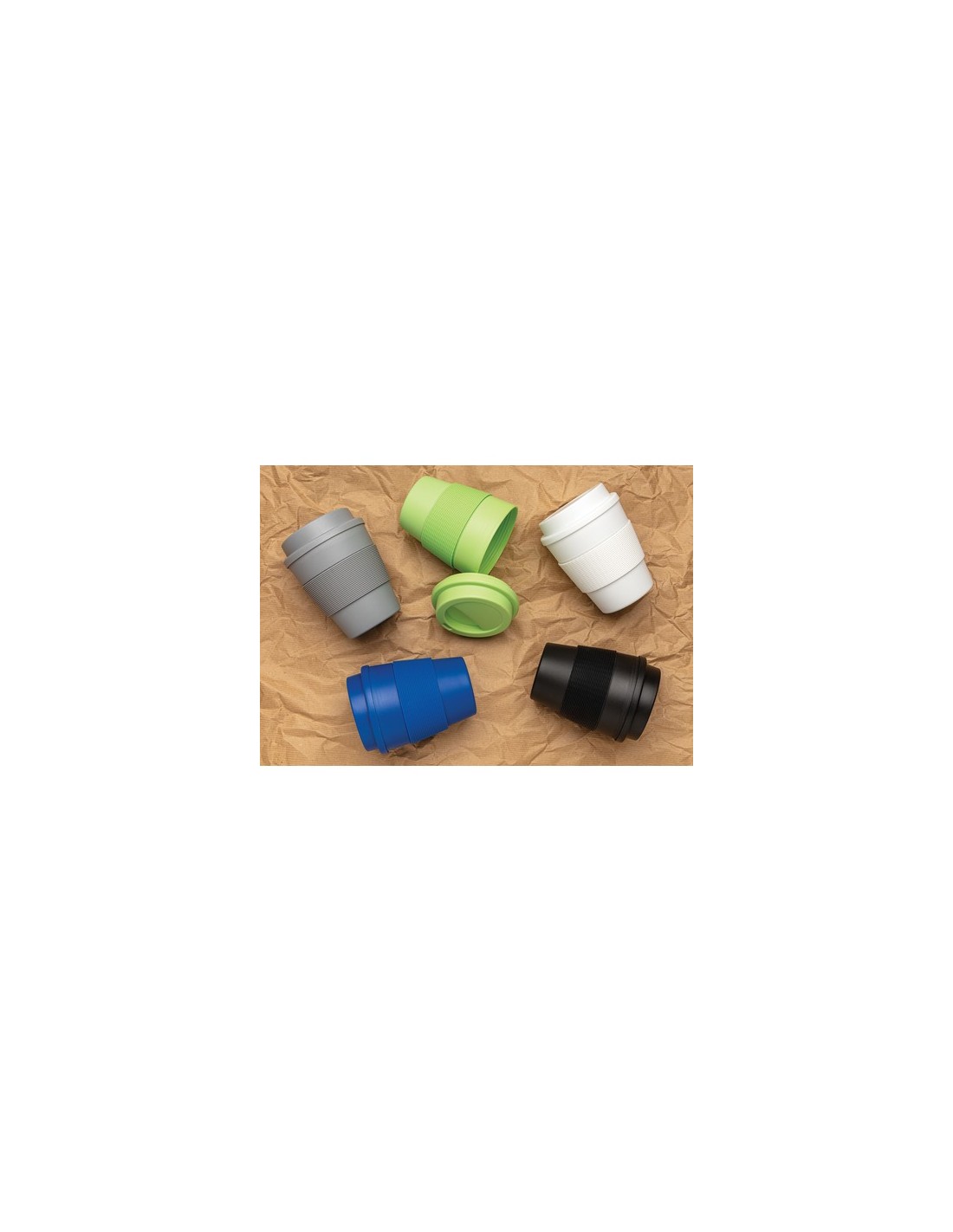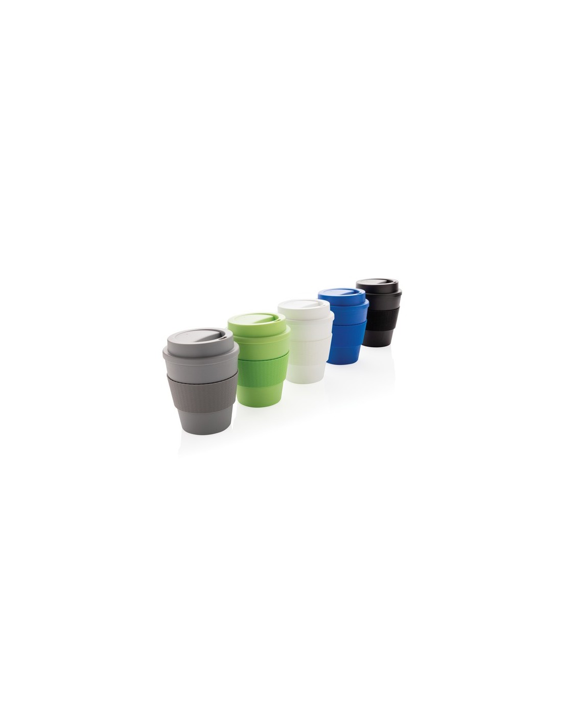 Deja de un solo uso! Trae tu propia taza y únete a la revolución de reutilización para que puedas contribuir a un mundo libre desechable. Estas tazas livianas y duraderas son perfectas para llevar tu café en movimiento. Estas tazas son reutilizables y están hechas de material PP 100% reciclable. Las tazas tienen una tapa de rosca y una funda de silicona. Seguras para alimentos de 100 grados Celsius aprobado. Apto para lavavajillas y microondas. Contenido: 350 ml. Material : PP, Silicona Recycled Content Percent : 0 Sin materiales Bisphenol A, Conforme legislación alimentos Alemania, Conforme PAHS content in Reach & ZEK 01-4-08, Conforme directiva Phtalate content, Libre de parafinas cloradas de cadena corta y media. Packaging : Polybag y a granel All print codes : Pad Print Drinkware - Print code default : Tampografía - parte frontal/alta del artículo - 30 x 10 mm - max color : 5 Social Audits : BSCI Total CO2 emissions : 0,34.