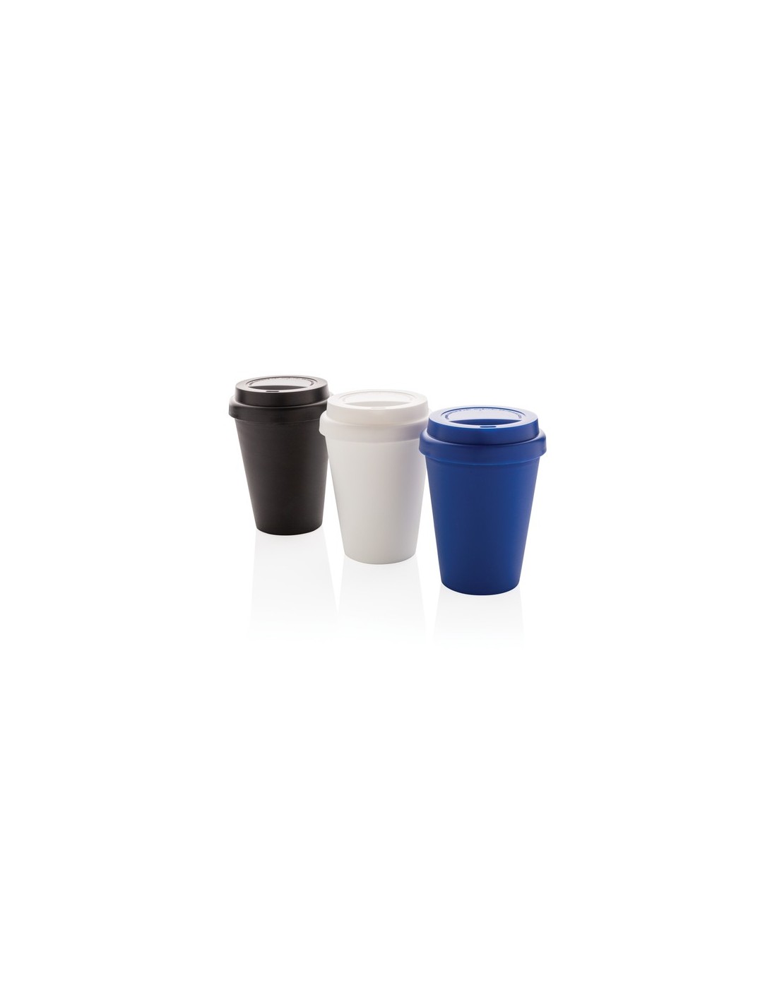 Deja de un solo uso! Trae tu propia taza y únete a la revolución de reutilización para que puedas contribuir a un mundo libre desechable. Estas tazas livianas y duraderas son perfectas para llevar tu café sobre la marcha. La taza de café es de doble pared, por lo que mantendrá tu bebida caliente por más tiempo para que la disfrutes. Las tazas son reutilizables y están hechas de material PP 100% reciclable. Seguras para alimentos de 100 grados Celsius aprobado. Las tazas tienen una tapa de rosca para evitar que la tapa se caiga mientras se bebe. Lavar únicamente a mano. Contenido: 300 ml. Material : PP Recycled Content Percent : 0 Sin materiales Bisphenol A, Libre de parafinas cloradas de cadena corta y media., Conforme directiva Phtalate content, Conforme PAHS content in Reach & ZEK 01-4-08, Conforme legislación alimentos Alemania Packaging : Polybag y a granel All print codes : Pad Print Drinkware,Digital round 360-1,SilkScreen Round - Print code default : Tampografía - parte frontal en medio - 20 x 50 mm - max color : 5 Social Audits : BSCI Total CO2 emissions : 0,36.