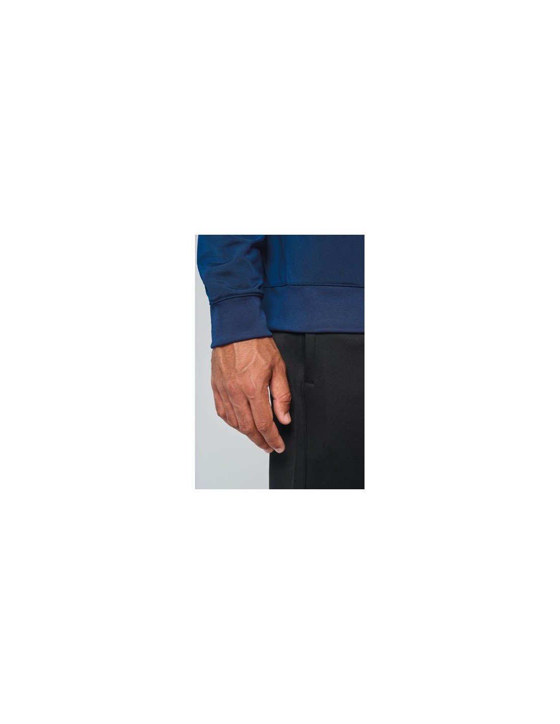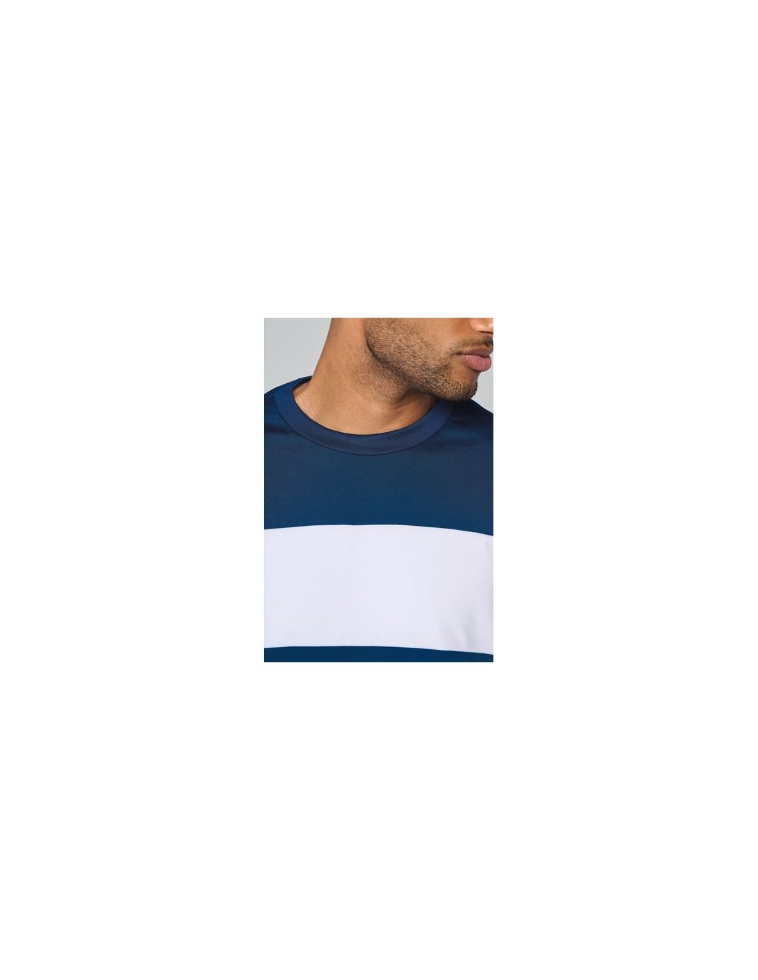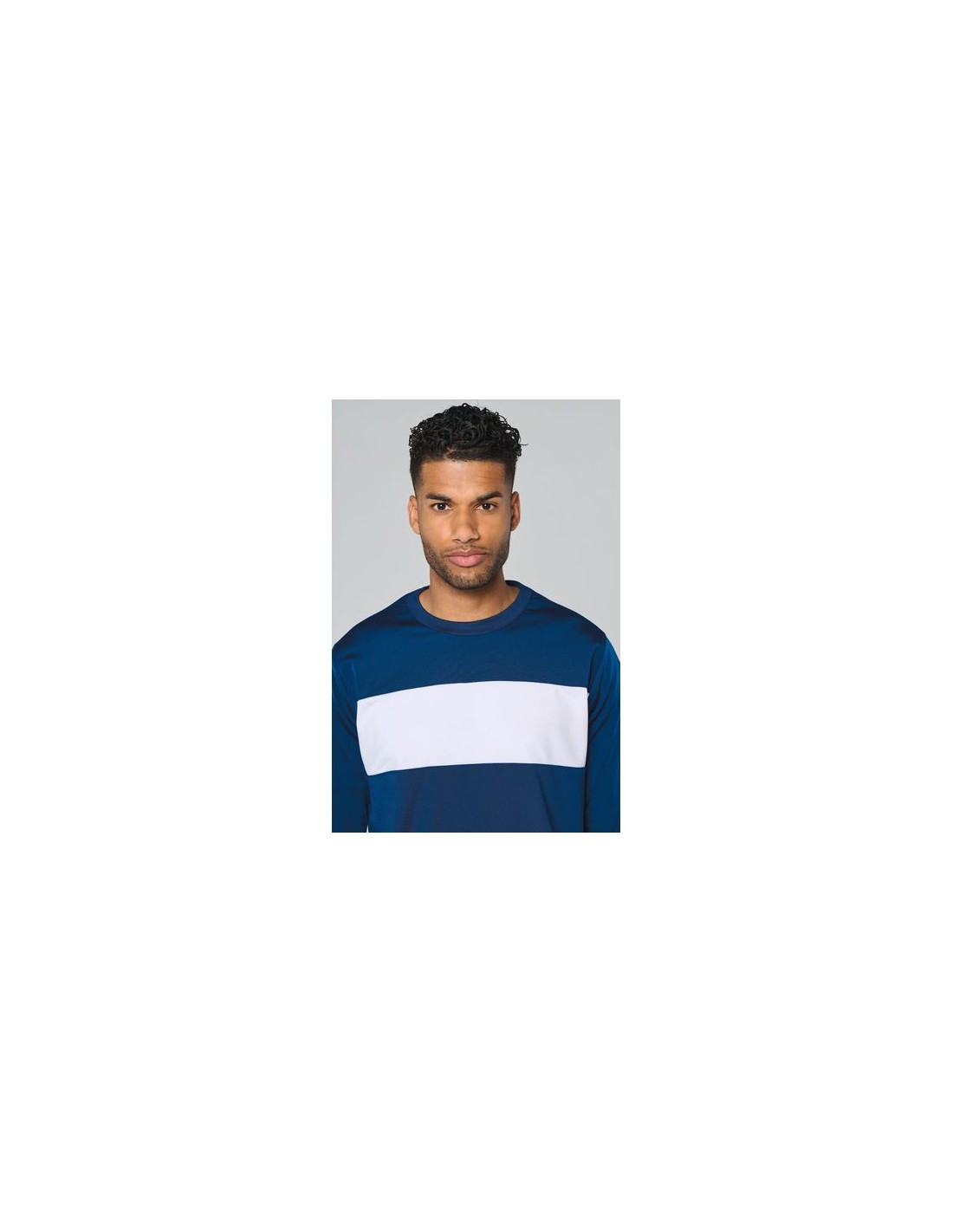 100 % poliéster : extremadamente resistente. Tira de limpieza interior en el cuello. 100% poliéster. Poliéster tricot. Tira contrastada en la parte delantera de una altura de 11,5 cm aprox. Cuello redondo. Tira cubrecosturas en interior cuello. Canalé con elastano en el cuello, puños y bajo de la prenda.