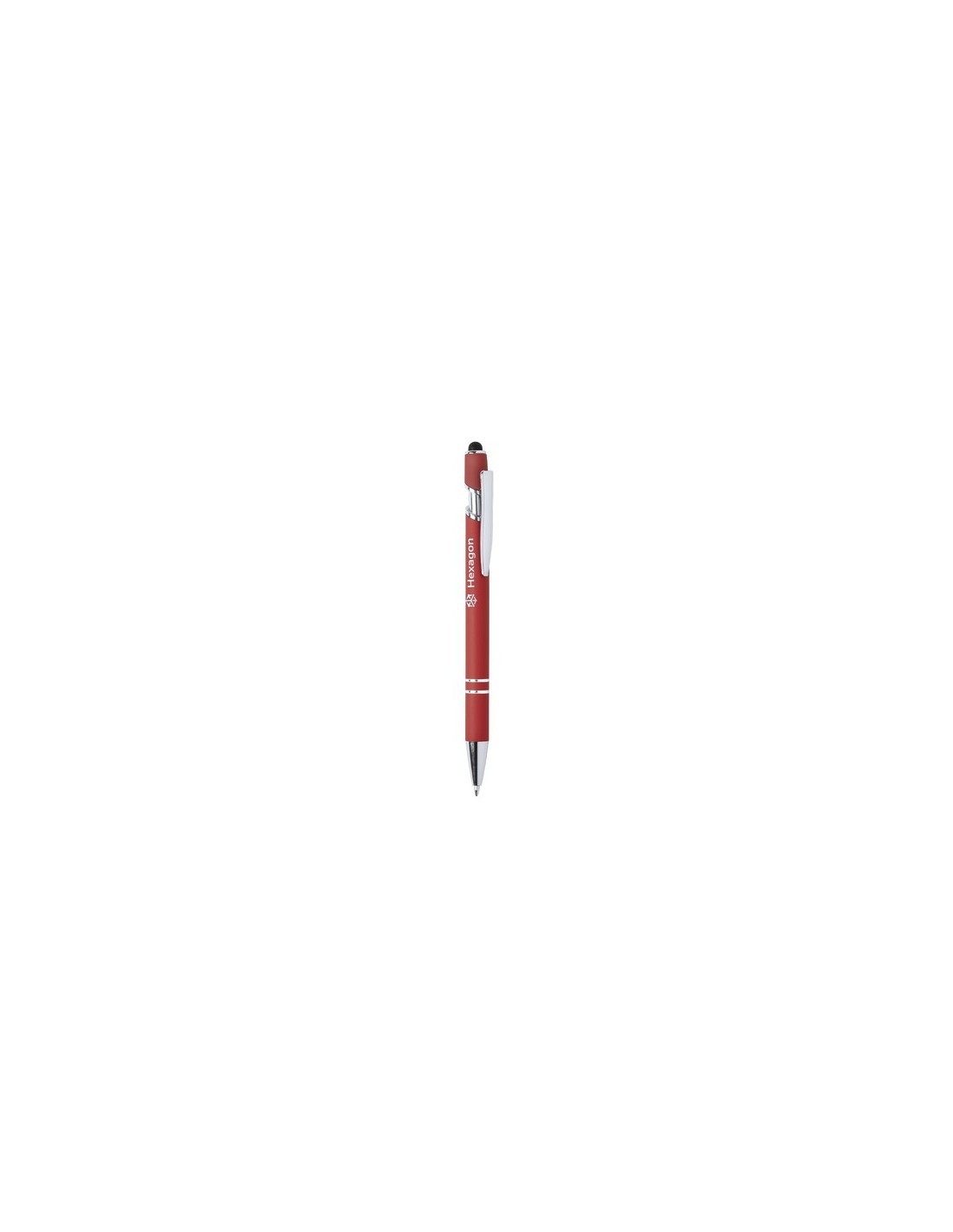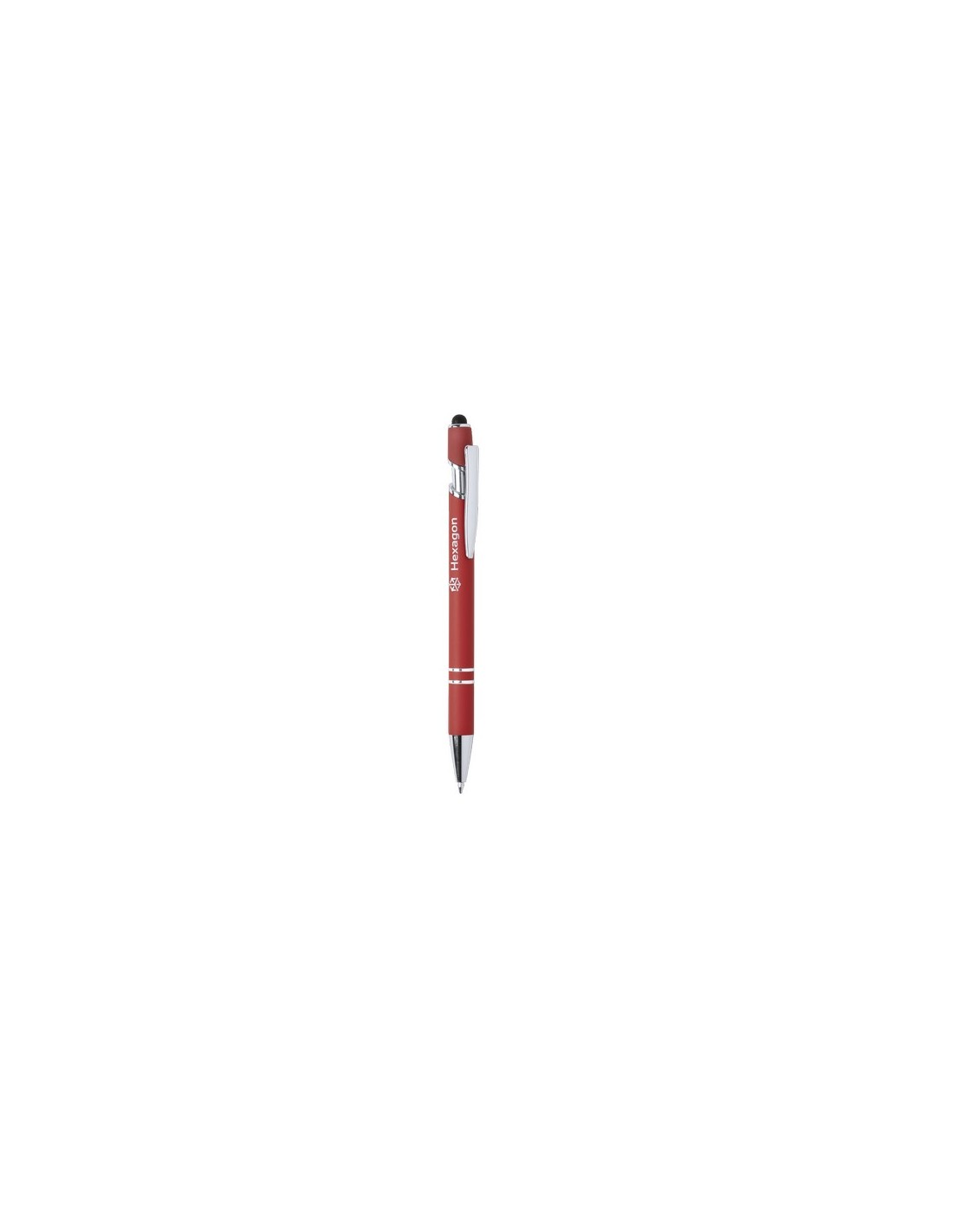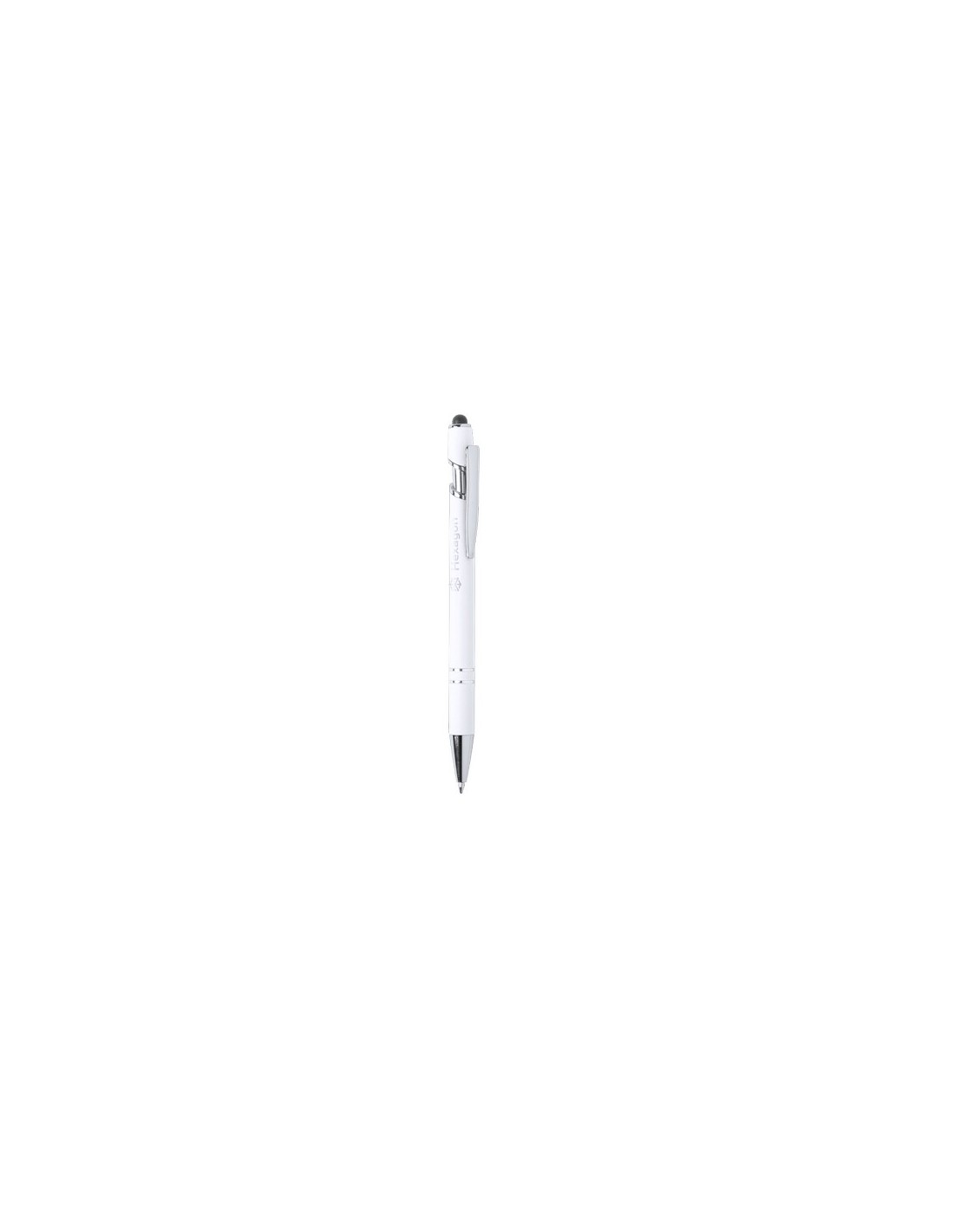 Bolígrafo puntero de mecanismo pulsador y original diseño. Cuerpo de aluminio acabado goma, especialmente diseñado para marcaje en láser y mostrar el logotipo en tono plateado. Con accesorios cromados y clip metálico. Disponible en variada gama de colores, con cartucho jumbo y tinta azul. Carga Jumbo Composition : Aluminio.