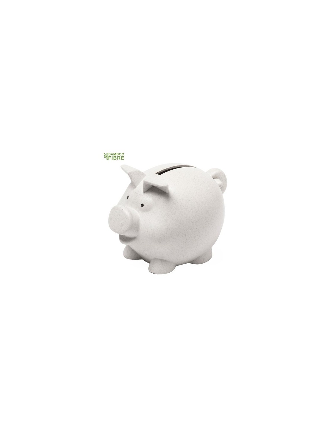 Hucha de línea nature con forma de cerdito, para ahorrar a la vez que se cuida del medio ambiente. Composition : Fibra de Bambú/ ABS.