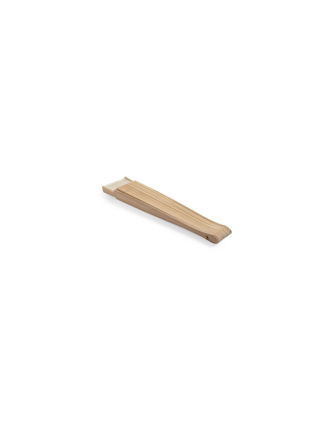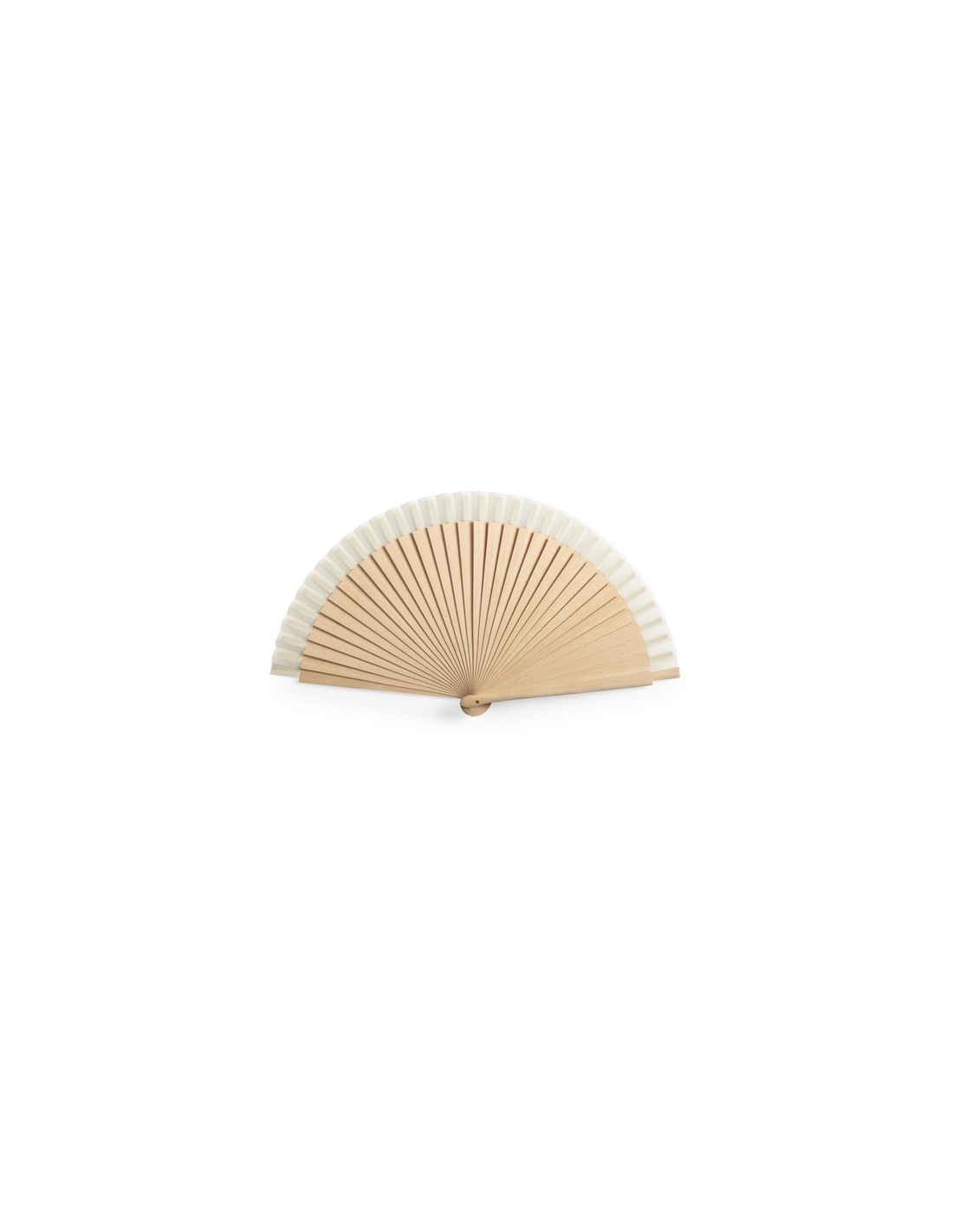 Abanico de línea nature, con varillas de madera y tela en algodón. Presentado en caja individual de diseño eco. Composition : Madera/ Algodón.