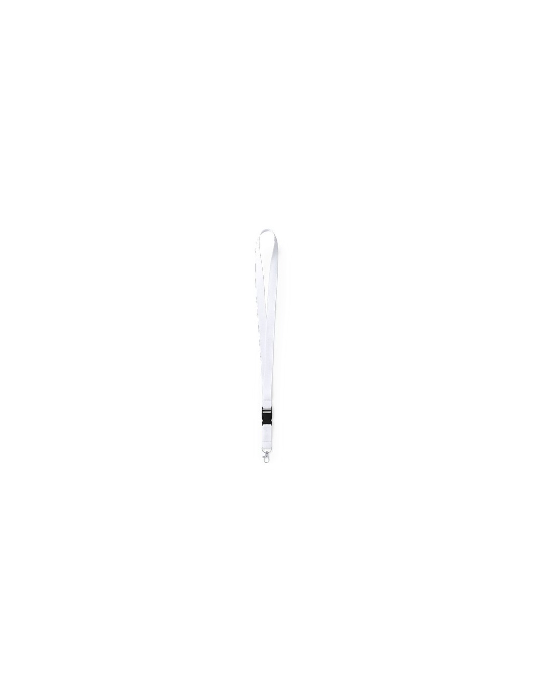 Lanyard en resistente poliéster con hebilla multifunción y gancho metálico. Disponible en variada gama de colores. Composition : Poliéster.