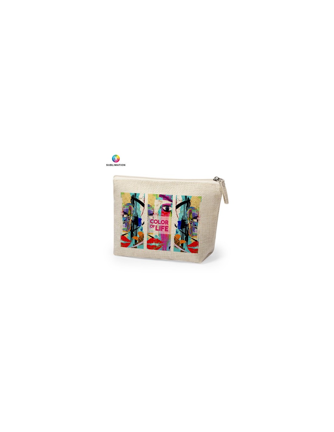 Neceser de inspiración nature, en resistente poliéster de suave tacto, especialmente elaborado para impresión en sublimación. Con cierre de cremallera y cinta en tirador para cómoda apertura. Composition : Poliéster.