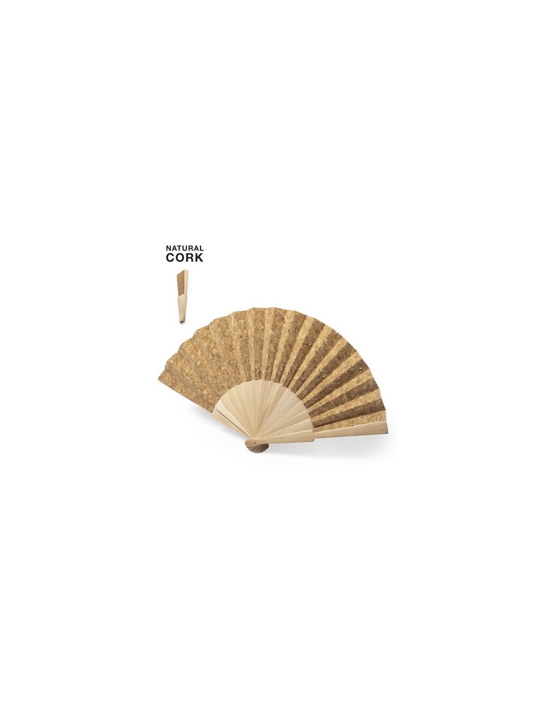 Abanico de línea nature, con varillas de madera y tela en corcho natural. Presentado en caja individual de diseño eco. Composition : Madera/ Corcho.