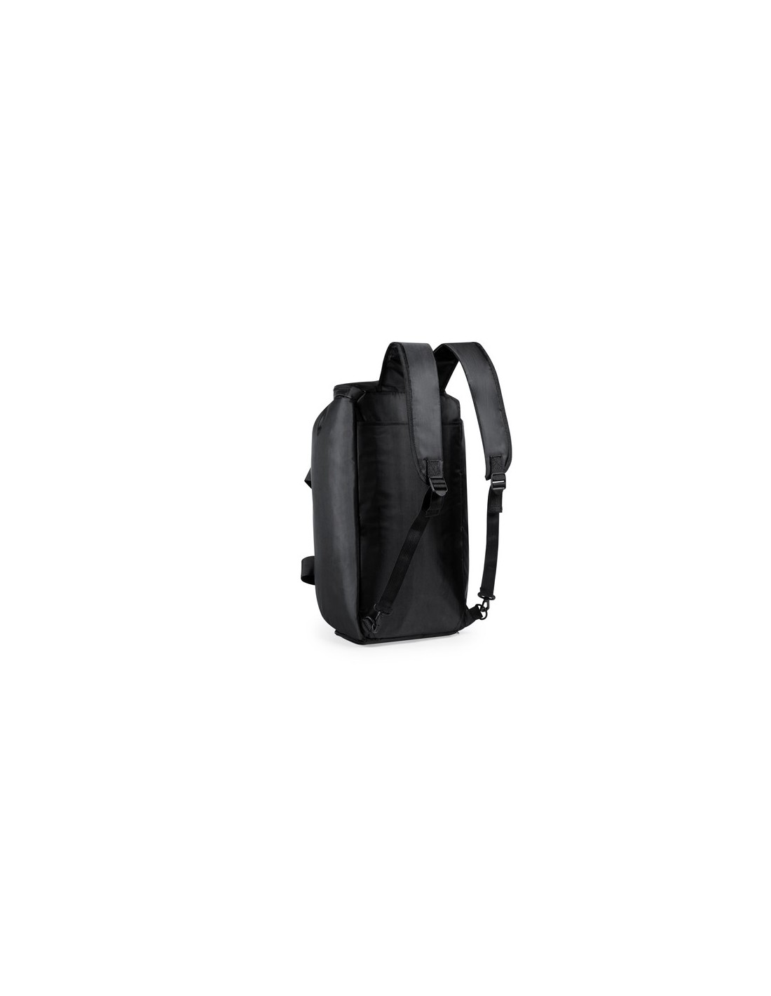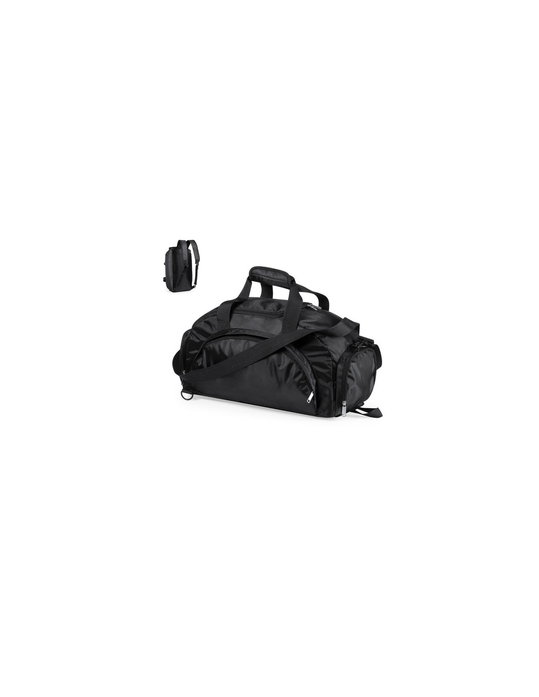 Bolso mochila en resistente nylon 420D. Compartimento independiente de cierre de cremallera para el calzado y bolsillo lateral de cremallera. Compartimento principal con cierre de cremallera de doble tirador y asas de transporte reforzadas, con cierre de velcro. Cintas de hombros y espalda acolchadas con cintas de ajuste regulables. Parte Trasera y Cintas Acolchadas. Compartimento Portazapatos Composition : Nylon 420D.