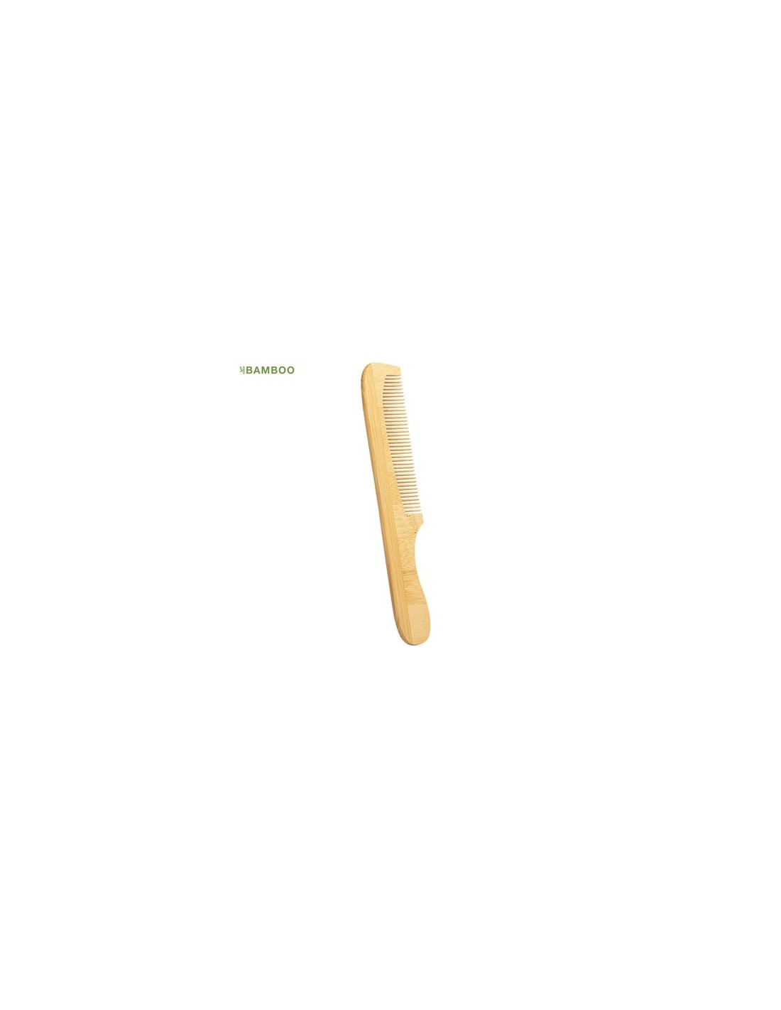 Peine de línea nature en bambú pulido, con amplia superficie de marcaje en mango. Composition : Bambú.