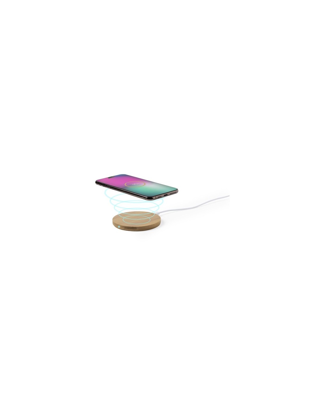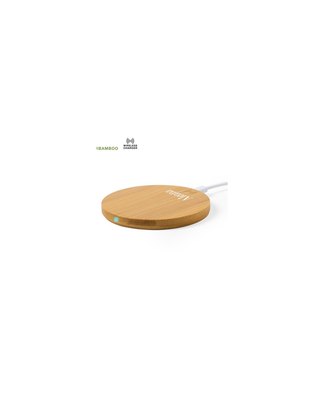 Cargador inalámbrico de línea nature y diseño circular. Carcasa en bambú procedente de cortes naturales. Indicador de estado de carga y compatible con dispositivos equipados con tecnología de carga inalámbrica. Amplia superficie de marcaje y presentado en atractiva caja de diseño eco. Inalámbrico 10W Composition : Bambú.