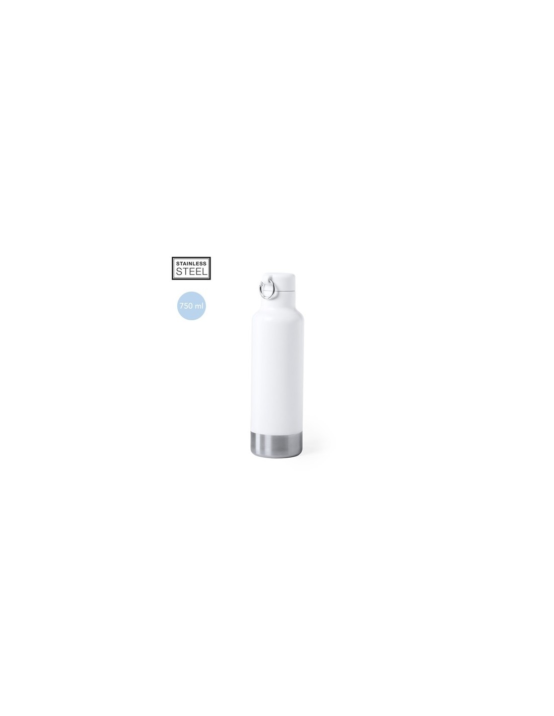 Bidón en alta calidad y de gran capacidad -750 ml-. En acero inox, con tapón a juego y anilla de transporte. Base en elegante acabado inox y disponible en elegantes colores blanco y negro. Presentado en atractiva caja de diseño Disponible manual de instrucciones en español e inglés. 750 ml Composition : Acero Inox.