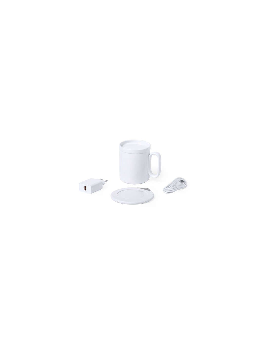 Calentador de tazas con cargador inalámbrico integrado de carga rápida -10W-. Con taza de cerámica de 350 ml, especialmente diseñada para calentar y mantener la temperatura de la bebida, con tapa a juego. Incluye cargador de pared y cable de carga Tipo C. Set presentado en atractiva caja de diseño. 350 ml. Inalámbrico 15W. Conexión USB Composition : Cerámica/ ABS.