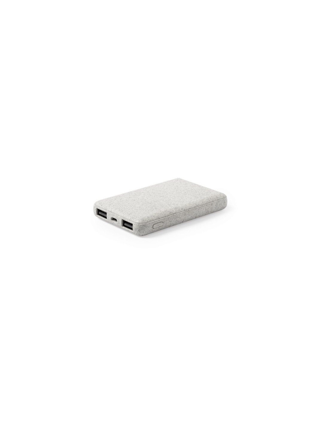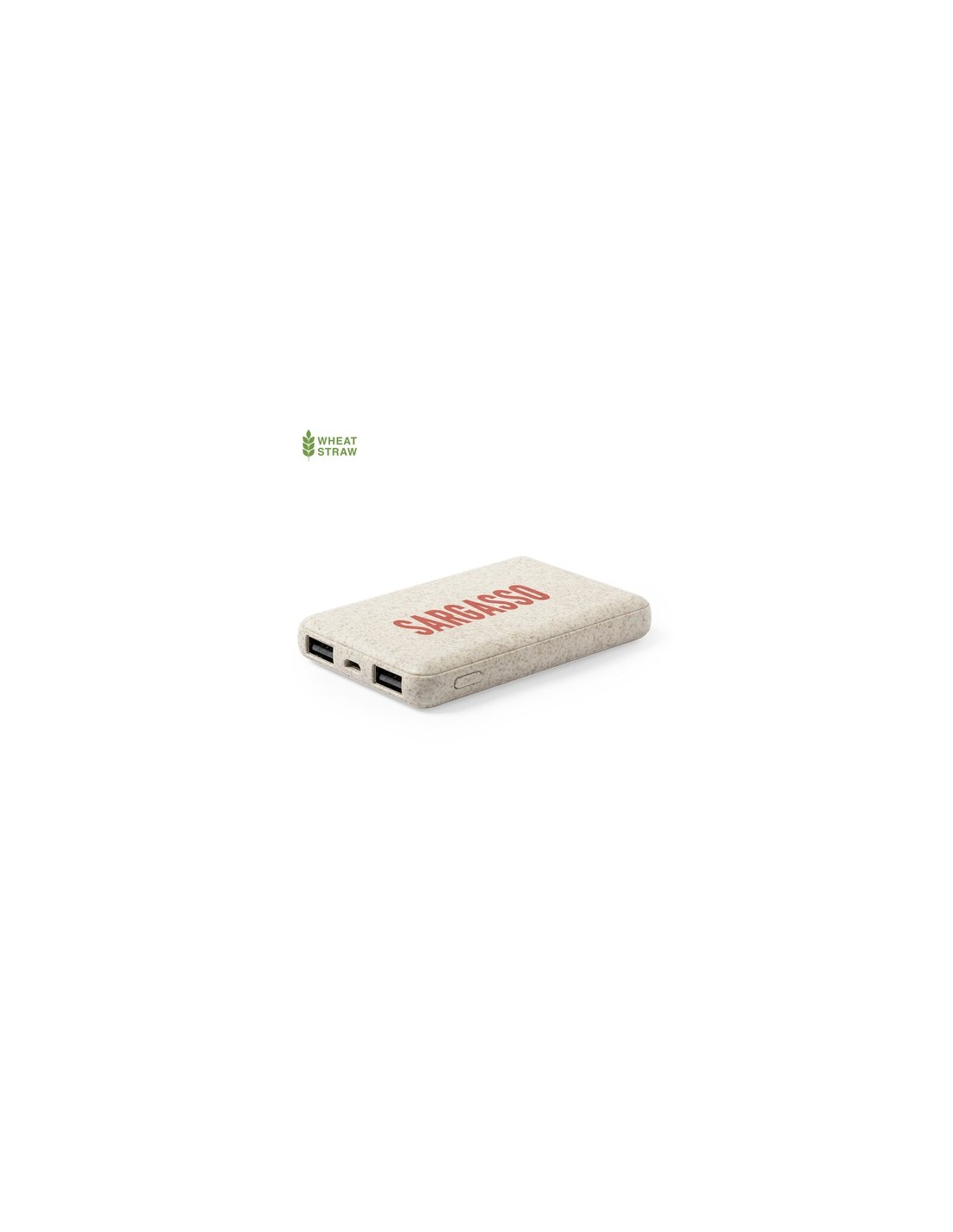 Batería auxiliar externa de línea nature de tamaño ultra compacto, con carcasa en caña de trigo, para así fomentar la utilización de materias primas naturales y reducir las emisiones contaminantes. 5.000 mAh de capacidad de carga e indicador de estado de carga. Salida USB dual para carga simultánea de 2 dispositivos y entrada micro USB -cable incluido-. Con amplia superficie de marcaje y presentado en atractiva caja de diseño eco. Las capacidades mostradas en todas nuestras baterías auxiliares externas son reales, incorporando todas ellas baterías de grado A y no recicladas, con una vida útil de al menos 500 ciclos de carga y según normativa CE. Además, están fabricadas conforme a los estándares RoHS y en cumplimiento con los siguientes requisitos de seguridad: Sistema de protección contra sobrecarga del power bank. Sistema de protección contra descarga completa que proporciona una mayor durabilidad del power bank. Sistema de bloqueo para evitar cortocircuitos. Sistema de transferencia de carga constante, acorde con la capacidad del dispositivo de destino. 5000 mAh. 2 Salidas USB. Entrada Micro USB Composition : Caña de Trigo/ ABS.