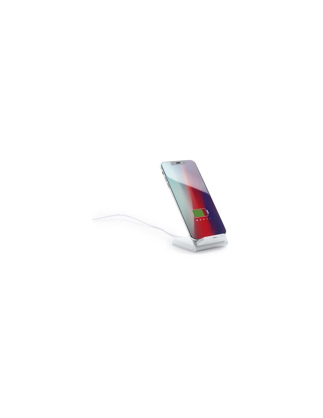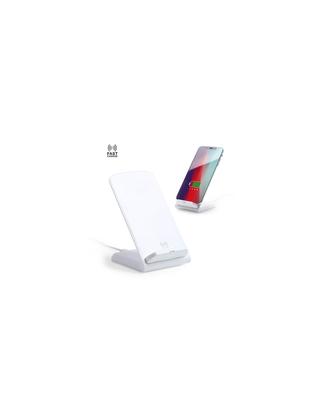 Cargador inalámbrico en elegante acabado blanco con función soporte para móvil. Función carga rápida de 10W y compatible con dispositivos equipados con tecnología de carga inalámbrica. Amplia superficie de marcaje y presentado en atractiva caja de diseño. Inalámbrico 15W