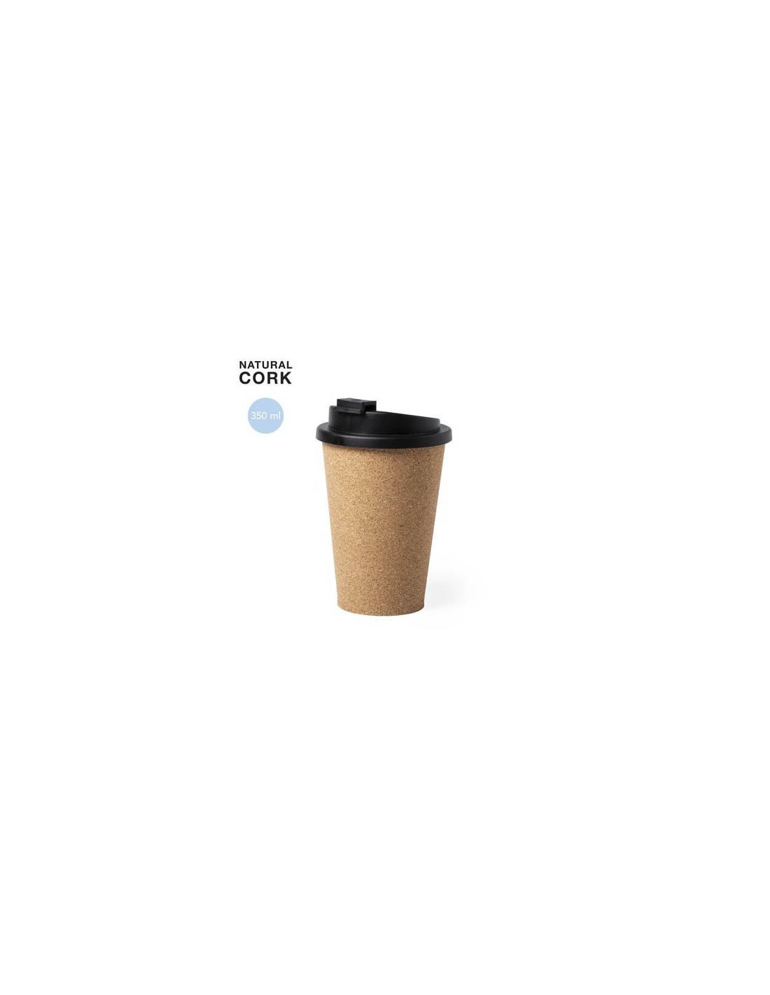 Vaso fabricado en corcho natural con 350 ml de capacidad. Dosificador y tapa abrefácil en PP, libre de BPA. Es ideal para tener en tu escritorio, mesa o en cualquier superficie donde disfrutar tranquilamente de tu bebida favorita. 350 ml Composition : Corcho/ PP.