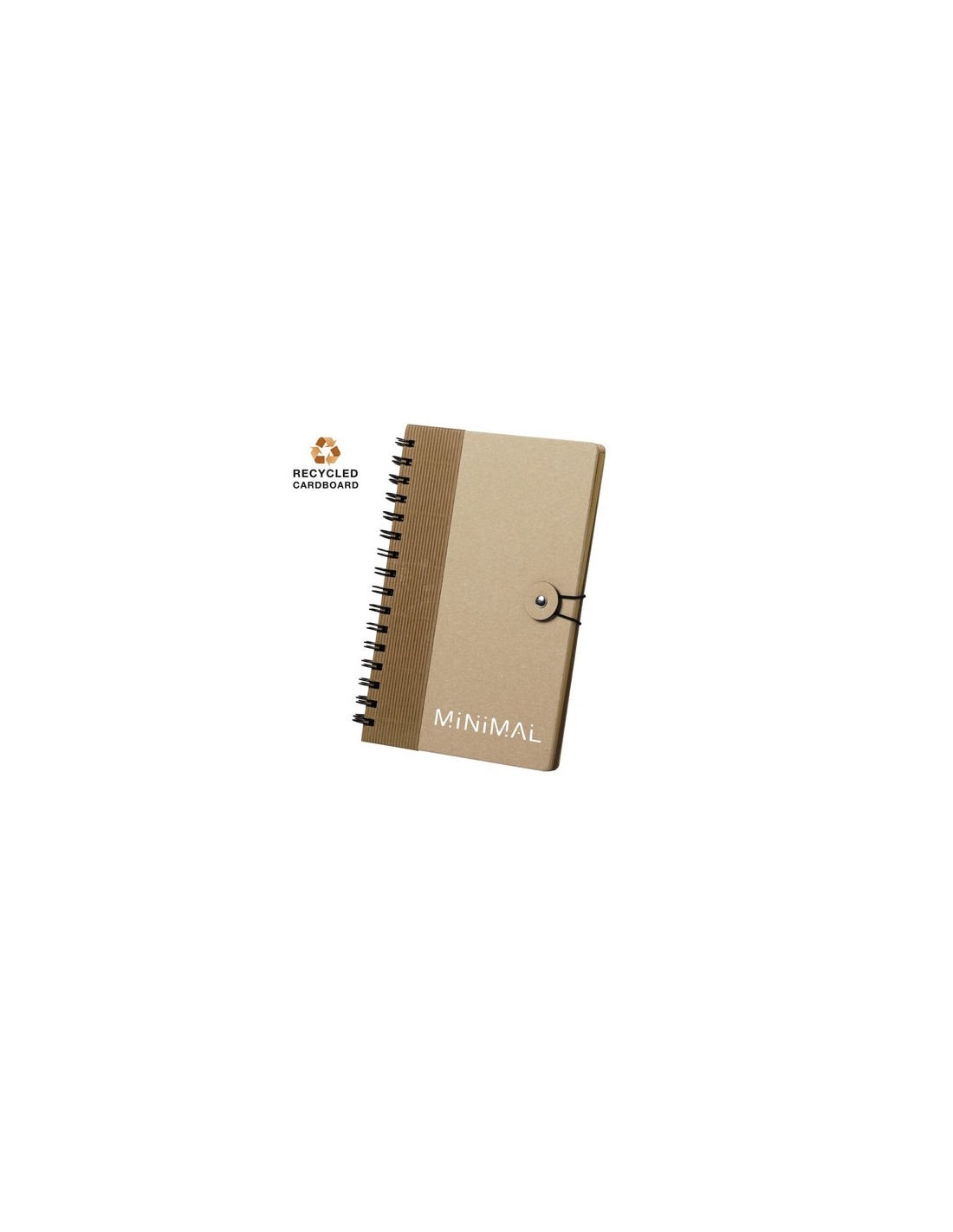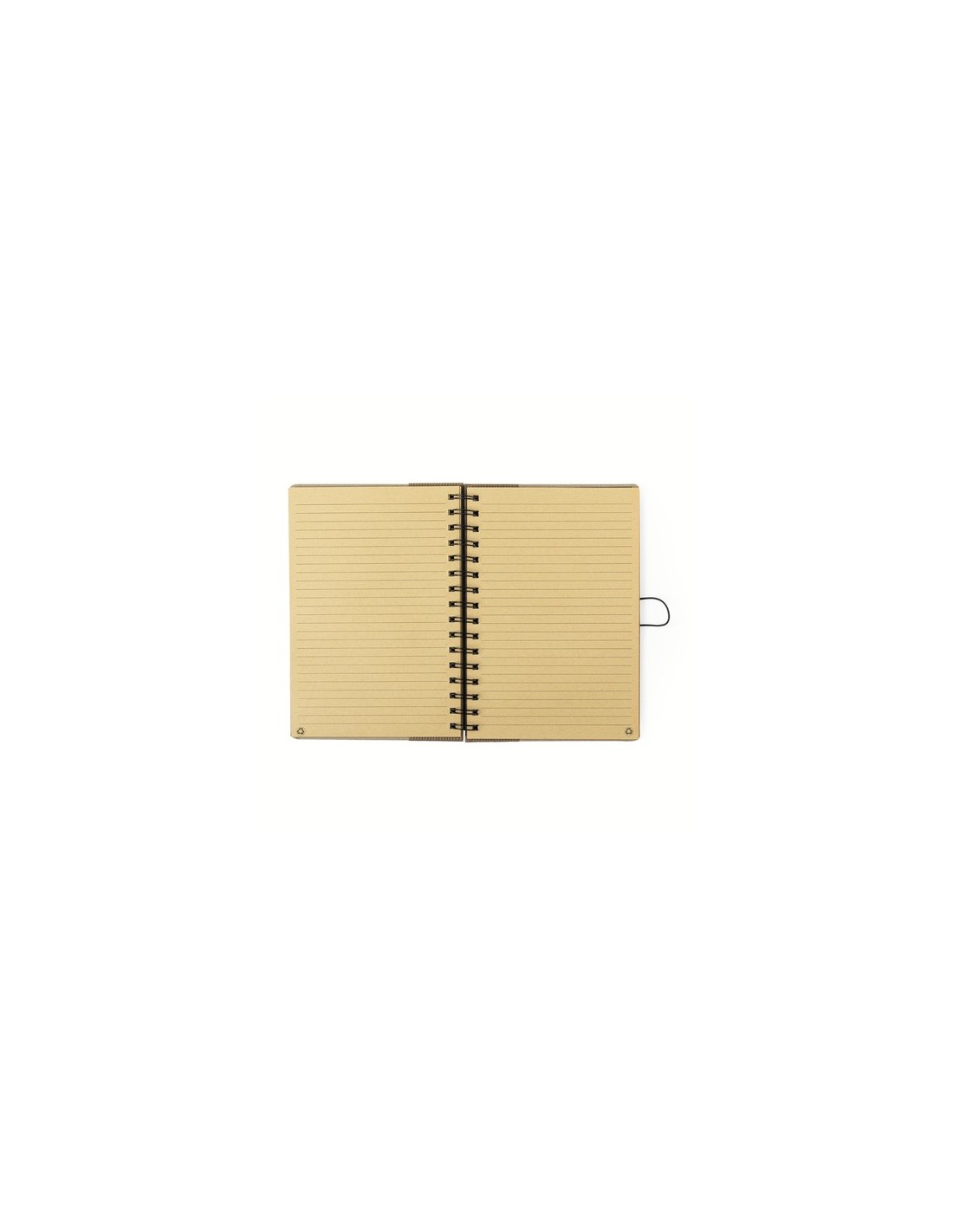 Libreta de anillas en línea nature. Con tapas rígidas de original diseño en cartón reciclado y cierre elástico. De 80 hojas con diseño eco y disposición a una raya. Portada Rígida. 80 Hojas Composition : Cartón Reciclado.