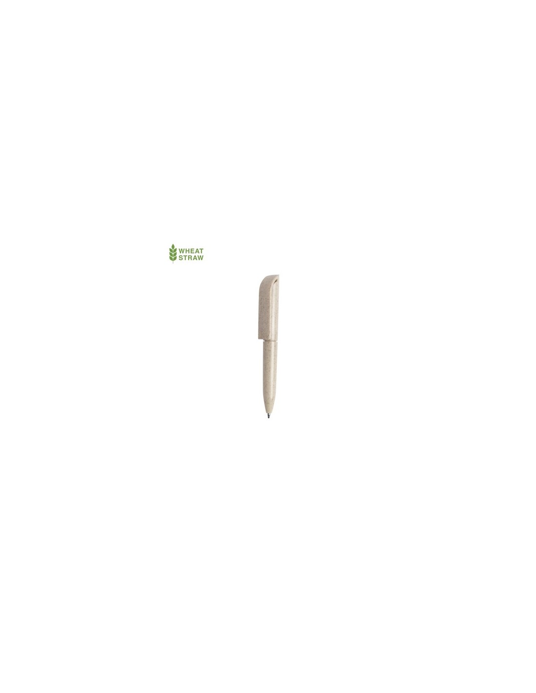 Minibolígrafo con mecanismo giratorio de línea nature. Cuerpo y accesorios en caña de trigo, para así fomentar la utilización de materias primas naturales y reducir las emisiones contaminantes. Disponible en variada gama de colores y en tinta azul. Composition : Caña de Trigo/ ABS.