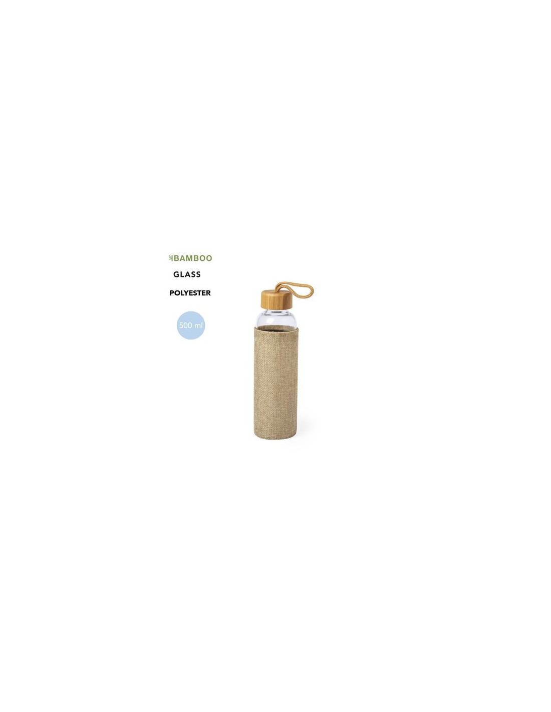 Bidón de línea nature en combinación de materiales bambú y cristal. 500 ml de capacidad, con tapón a rosca en bambú y funda en acabado de inspiración eco. Asa de transporte en color nature y presentado en atractiva caja de diseño eco. Disponible manual de instrucciones en español e inglés. 500 ml. Funda Poliéster Composition : Cristal/ Bambú.