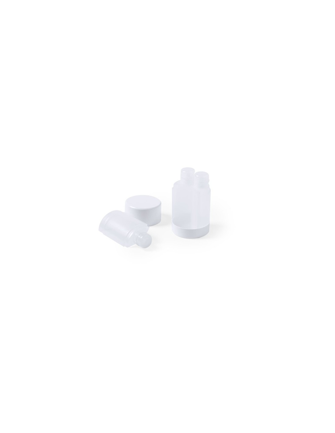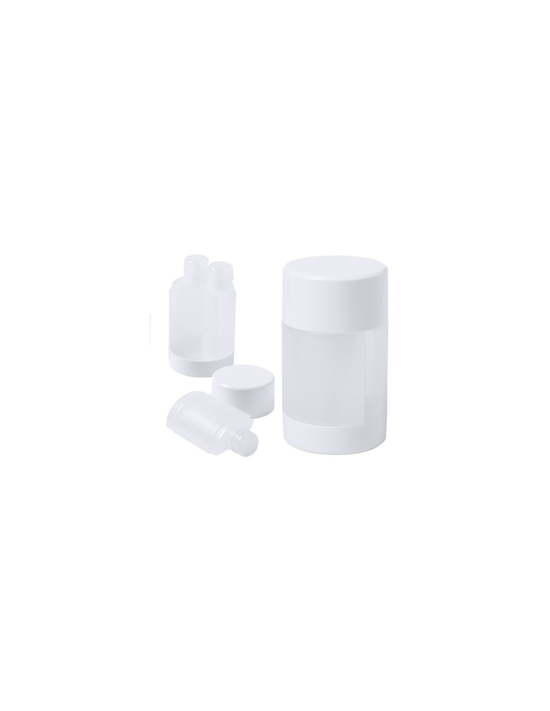 Set de viaje de 3 accesorios en resistente PP. Incluye 3 botes para gel y champú con cierre hermético. Presentado en estuche de original diseño. 3 Accesorios Composition : PP.