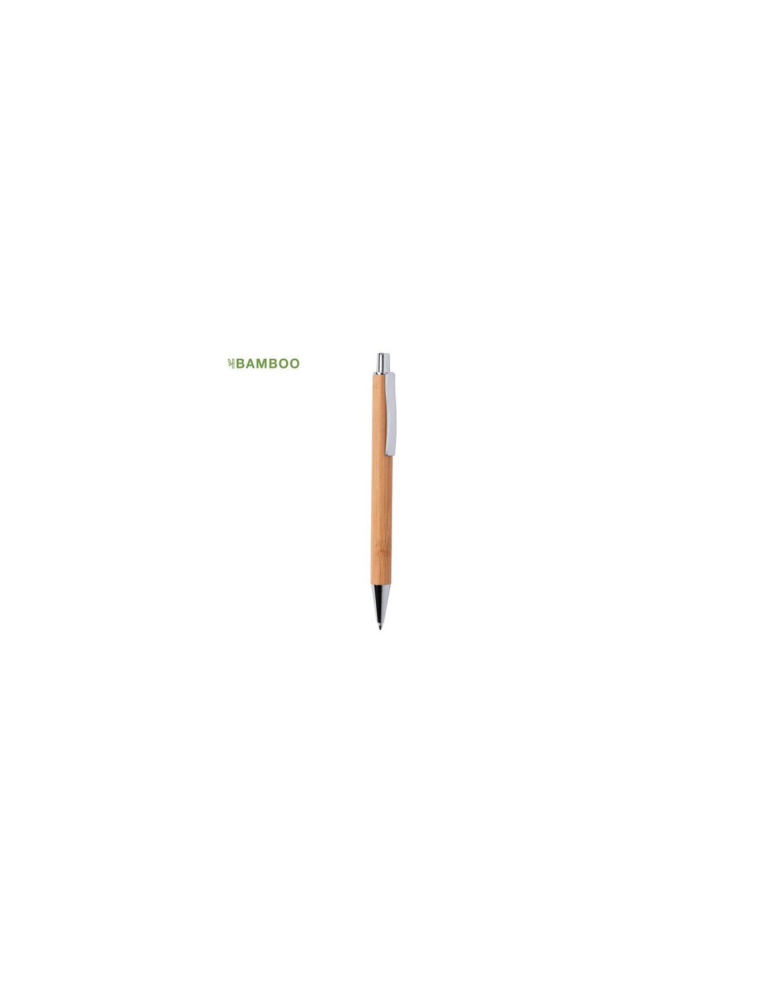 Bolígrafo de línea nature con cuerpo en bambú y accesorios cromados. De mecanismo pulsador y en tinta azul. Composition : Bambú.