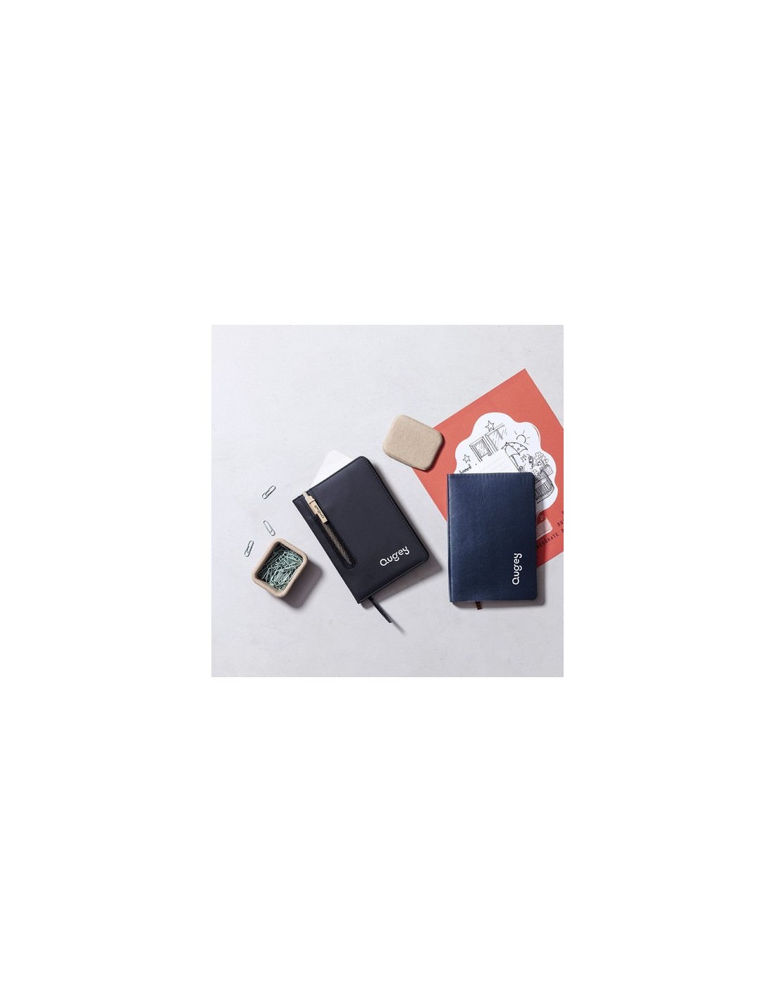 Bloc de notas con suaves tapas en polipiel de acabado flexible. 100 hojas con disposición a una raya y marcapáginas de tela a juego. Disponible en sobrios colores 100 Hojas Composition : Polipiel.