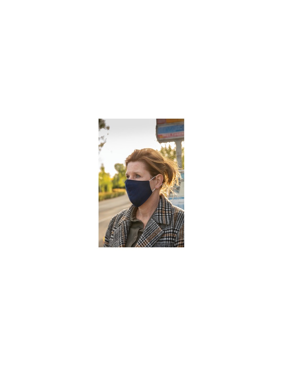 Esta máscara protectora de algodón de 320 g/m2 (2 capas de 160 g/m2) está hecha para adaptarse a cada cara. El uso de esta máscara evita que tu mano toque la boca y la nariz. También reduce la propagación de la saliva al hablar, estornudar o toser. Máscara de pliegue plano diseñada para que sea duraderay cómoda. Con gomas cómodas y ajustables para poner y quitar fácilmente. Filtración >70%.Lavable a máquina a 60 grados durante 10 ciclos. Con inserto para filtro. Incluye manual.Estas mascaras son diseñadas y fabricadas en conformidad con:CEN Workshop Agreement: CWA 1755. Cubrimientos faciales comunitarios: guía de requisitos mínimos, métodos de prueba y uso.Este artículo no es un dispositivo médico en relación al Reglamento EU/2017/745 (máscaras quirúrgicas) ni es un equipo de protección personal en relación al Reglamento EU/2016/425 (máscaras filtrantes tipo FFP2) Material : Algodón Recycled Content Percent : 0 Reach annex XVII: Dimethyl fumarate (DMFu), Conforme directiva AZO dye 2002/61/EC, Conforme directiva Formaldahyde EN 14184-1 Packaging : Polybag y a granel All print codes : Screen Transfer OS,Digital Transfer OS - Print code default : Serigrafía por Transferencia - parte frontal y derecha del artículo - 50 x 60 mm - max color : 6 Social Audits : BSCI Total CO2 emissions : 0,15.