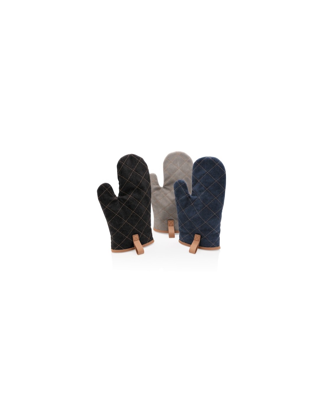 Un práctico compañero en la cocina, este guante acolchado para horno protege tus manos de objetos calientes. El pulgar separado asegura un buen agarre, unido con detalles decorativos de PU. Hecho con alta calidad de 16 oz. lona. Viene en caja de regalo kraft. Apto lavadora a 30 grados con colores similares. Material : Lienzo, PU Recycled Content Percent : 0 Conforme directiva AZO dye 2002/61/EC, Conforme directiva Formaldahyde EN 14184-1, Conforme directiva PCP content 1999/51/EC, Coformidad según la directiva EN 407 para guantes de protección contra riesgos térmicos (calor y/o fuego) Packaging : Caja de regalo All print codes : Screen Transfer OS,Digital Transfer OS - Print code default : Serigrafía por Transferencia - parte trasera - 90 x 90 mm - max color : 6 Social Audits : BSCI Total CO2 emissions : 1,4.