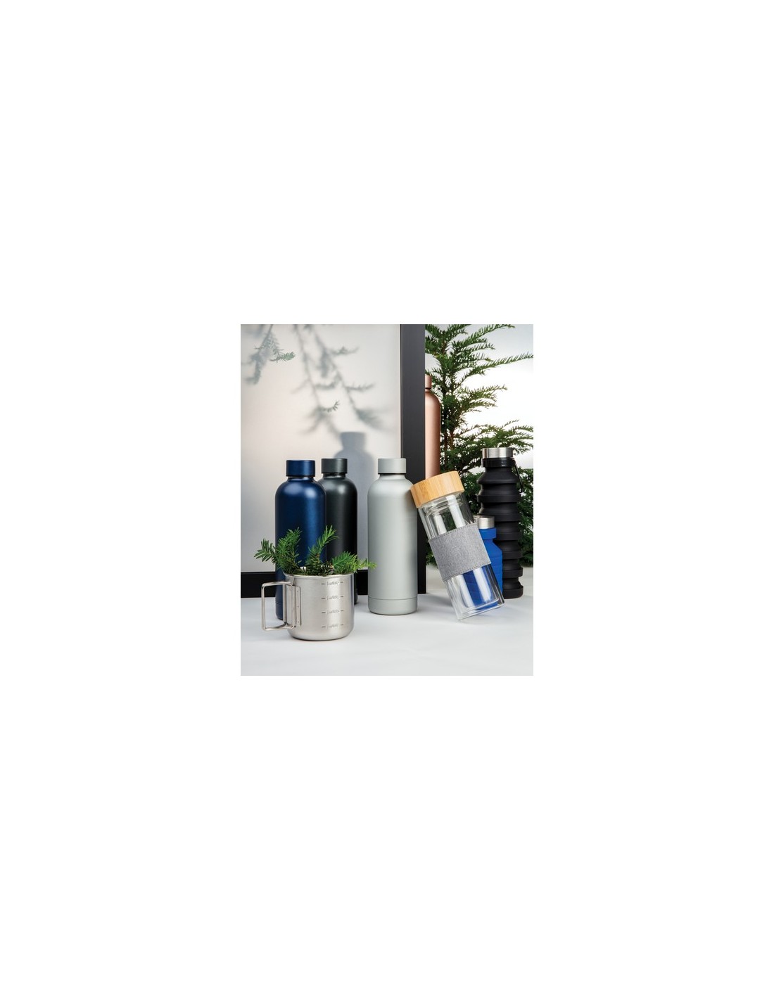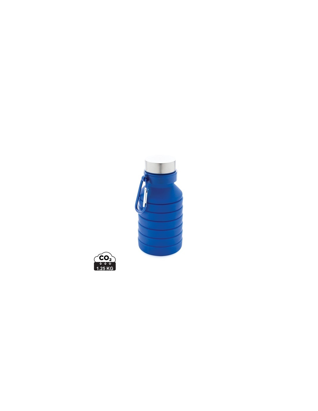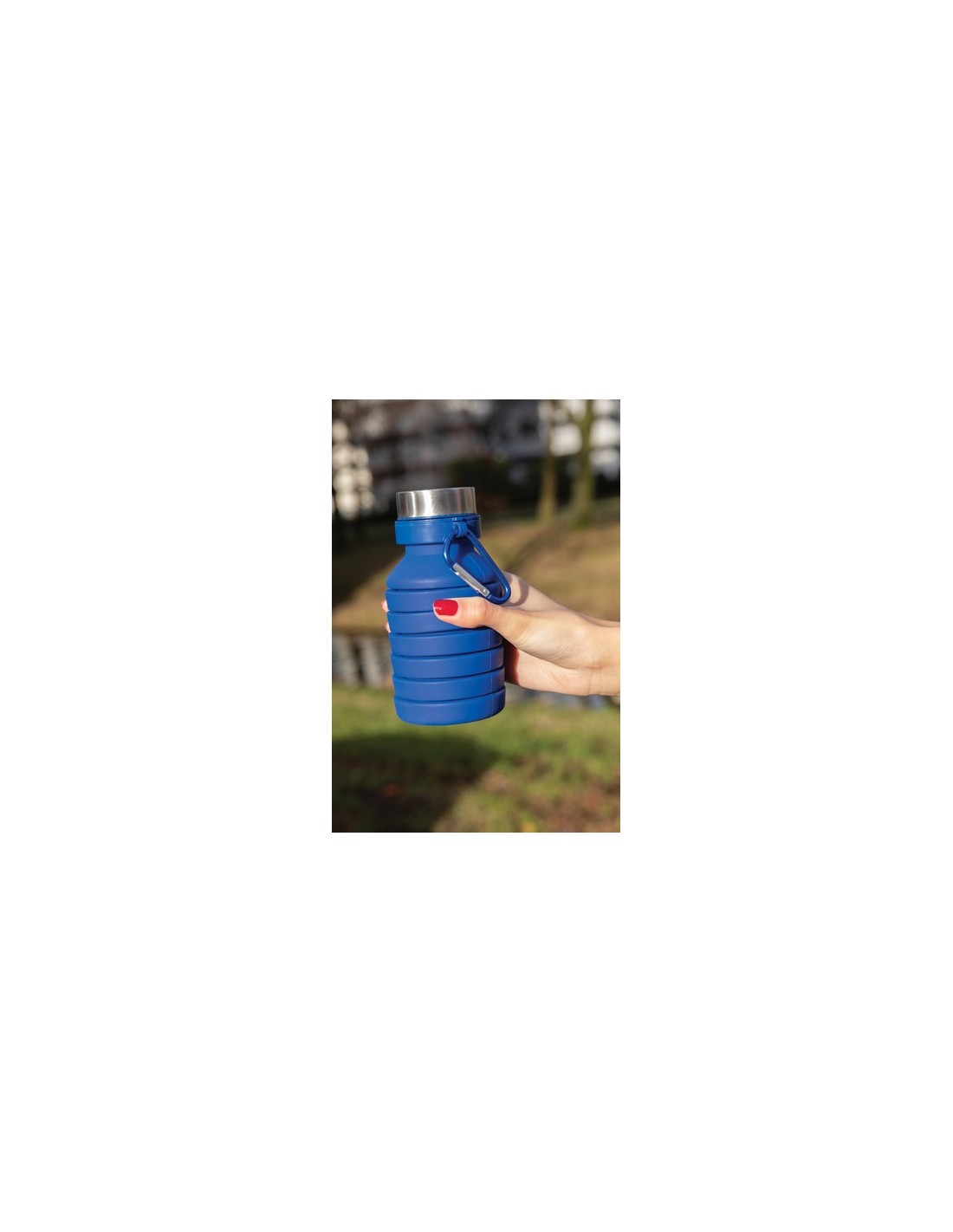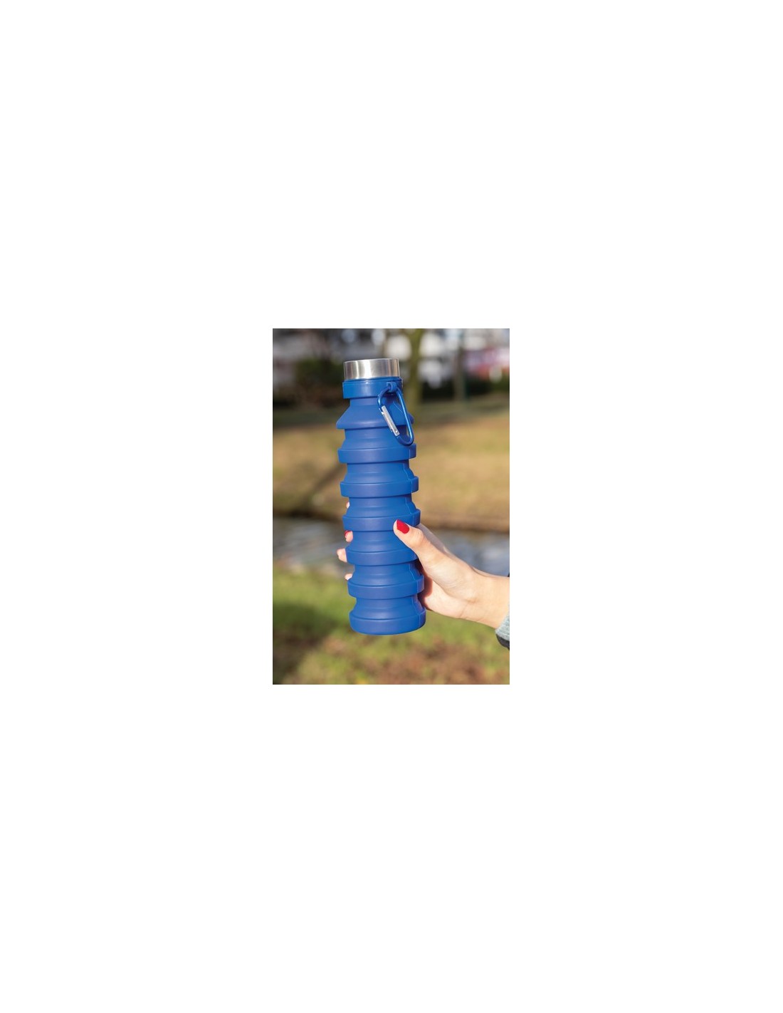 Ahorra un 50% de espacio gracias a esta botella de silicona plegable de diseño inteligente. Con su capacidad de 550 ml, puedes mantenerte hidratado mientras estás fuera de casa durante tus actividades al aire libre. Hecho de material de silicona 100% de grado alimenticio, es flexible y fácil de limpiar. Un práctico mosquetón te permite enganchar la botella en tu bolsa para transportarla fácilmente. Sin BPA. Material : Silicona, Aluminio Recycled Content Percent : 0 Sin materiales Bisphenol A, Conforme legislación alimentos Alemania, Conforme directiva Phtalate content, Libre de parafinas cloradas de cadena corta y media. Packaging : Caja de regalo All print codes : Pad Print Drinkware,Doming,Laser Engraving 3 - Print code default : Tampografía - parte superior - 30 x 30 mm - max color : 5 Social Audits : BSCI Total CO2 emissions : 1,25.