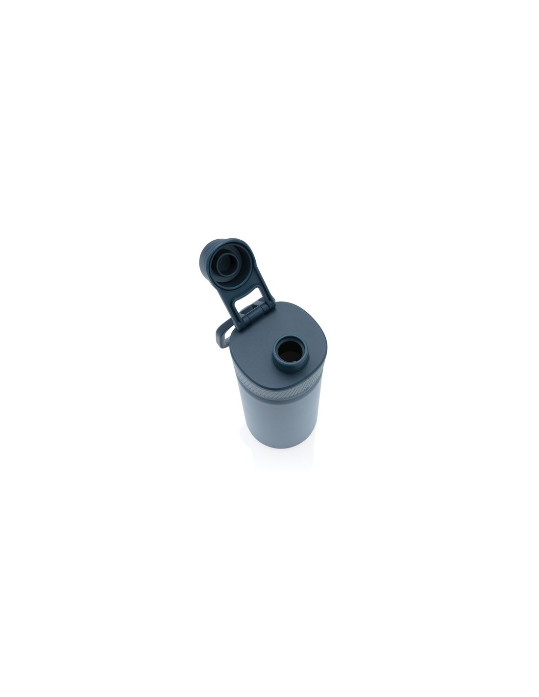 Disfruta de un poco de agua helada después de un entrenamiento intenso o una bebida caliente para calentarse después de una caminata rápida, bebe con estilo con esta hermosa botella al vacío de acero inoxidable. Tapa de diseño único antigoteo y un acabado mate de lujo para refrescarse mientras viajas. Mantene bebidas calientes durante 5 horas y frías durante 15 horas. Capacidad 550ml. Sin BPA. Material : Acero inoxidable, Silicona Recycled Content Percent : 0 Sin materiales Bisphenol A, Conforme legislación alimentos Alemania, Conforme directiva Phtalate content, Libre de parafinas cloradas de cadena corta y media. Packaging : Caja de regalo All print codes : Pad Print Drinkware,Laser Engraving 3,SilkScreen Round,Digital round 360-2 - Print code default : Tampografía - parte frontal en medio - 30 x 50 mm - max color : 5 Social Audits : SMETA Total CO2 emissions : 3,13.