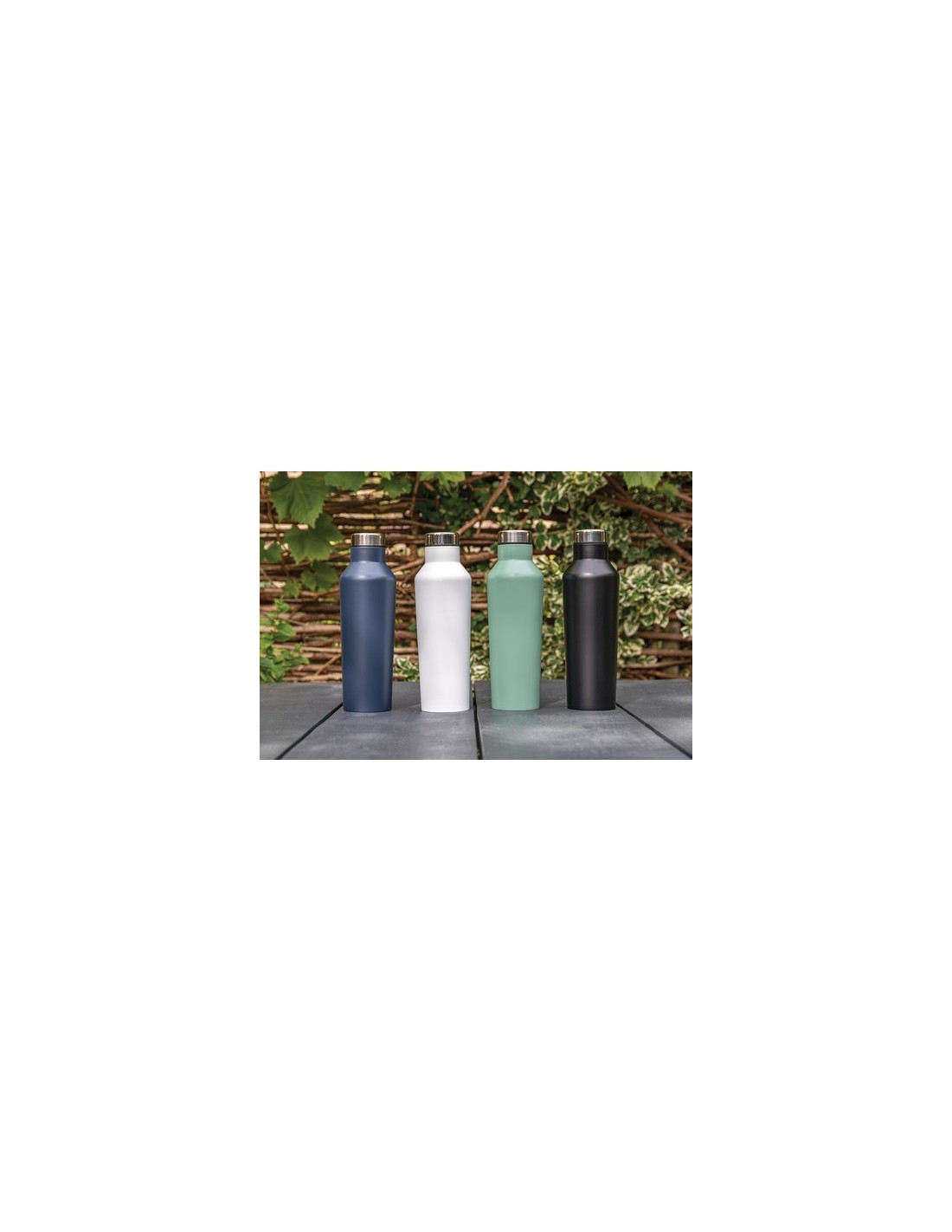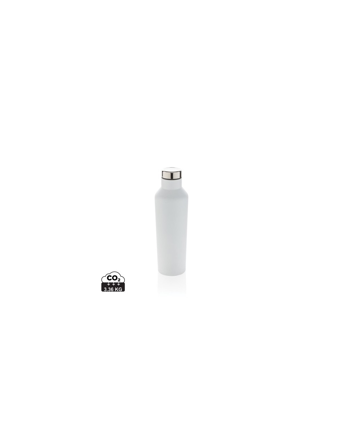 Una hermosa botella contemporánea de acero inoxidable al vacío que sobresale del resto. Con su diseño único, esta botella es un activo definitivo para tus elementos esenciales. Hecha de acero inoxidable de alta calidad con cierre rosca antigoteo. Mantiene todo lo que desees frío durante 15 horas o caliente durante 5 horas. Sin BPA. Material : Acero inoxidable, PP Recycled Content Percent : 0 Sin materiales Bisphenol A, Conforme legislación alimentos Alemania, Conforme directiva Phtalate content, Libre de parafinas cloradas de cadena corta y media. Packaging : Caja de regalo All print codes : Pad Print Drinkware,Laser Engraving 3,Doming,Digital round 360-2,SilkScreen Round - Print code default : Tampografía - parte frontal en medio - 25 x 60 mm - max color : 5 Social Audits : SMETA Total CO2 emissions : 3,36.