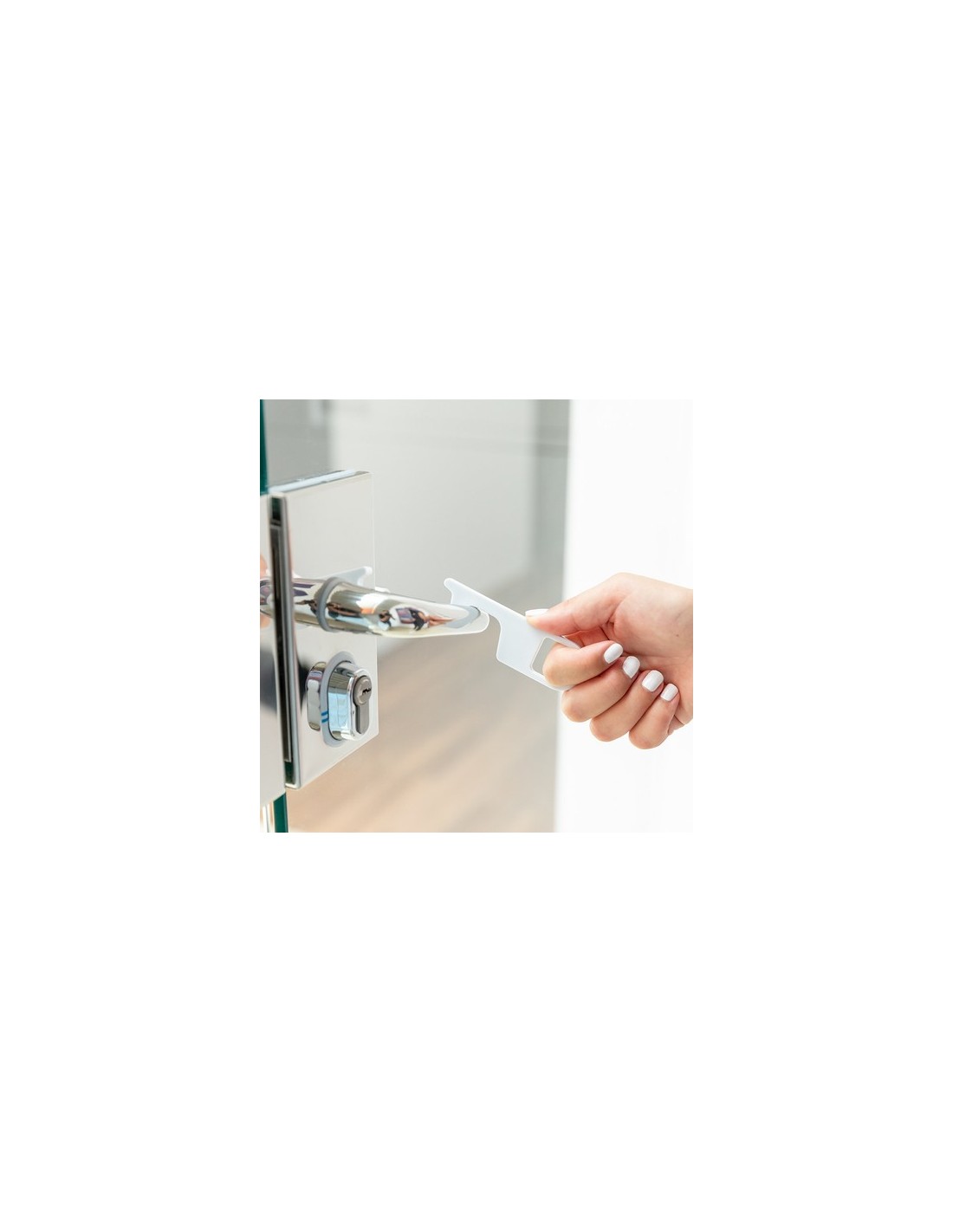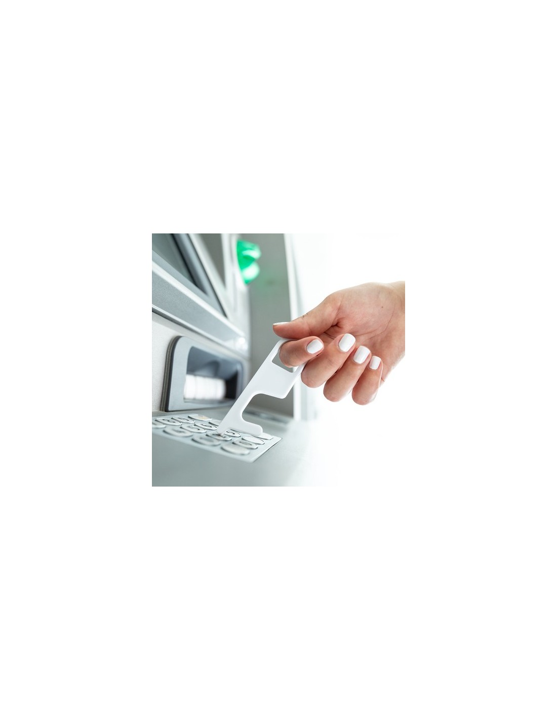 Llavero higiénico antibacteriano y anti-contacto, fabricado en resistente ABS de acabado sólido. Especialmente diseñado para evitar tocar con las manos superficies de uso común (picaportes de puertas, interruptores, grifos de uso público, cajeros automáticos...). Con cómodo troquel para el dedo y presentado en bolsita individual. Recomendado para marcaje en tampografía.Los productos con tratamientos antibacterianos son capaces de reducir drásticamente las cargas bacterianas presentes en las superficies de los materiales, gracias a la incorporación de agentes microbianos permanentes estáticos, con alta efectividad para inhibir y prevenir la contaminación bacteriana.Artículo de acuerdo al estándar ISO 22196, que determina la actividad antibacteriana en materiales plásticos y superficies no porosas, lo que permite conocer la efectividad de inhibición microbiana que tienen los aditivos sobre los objetos tratados mediante una evaluación cuantitativa.