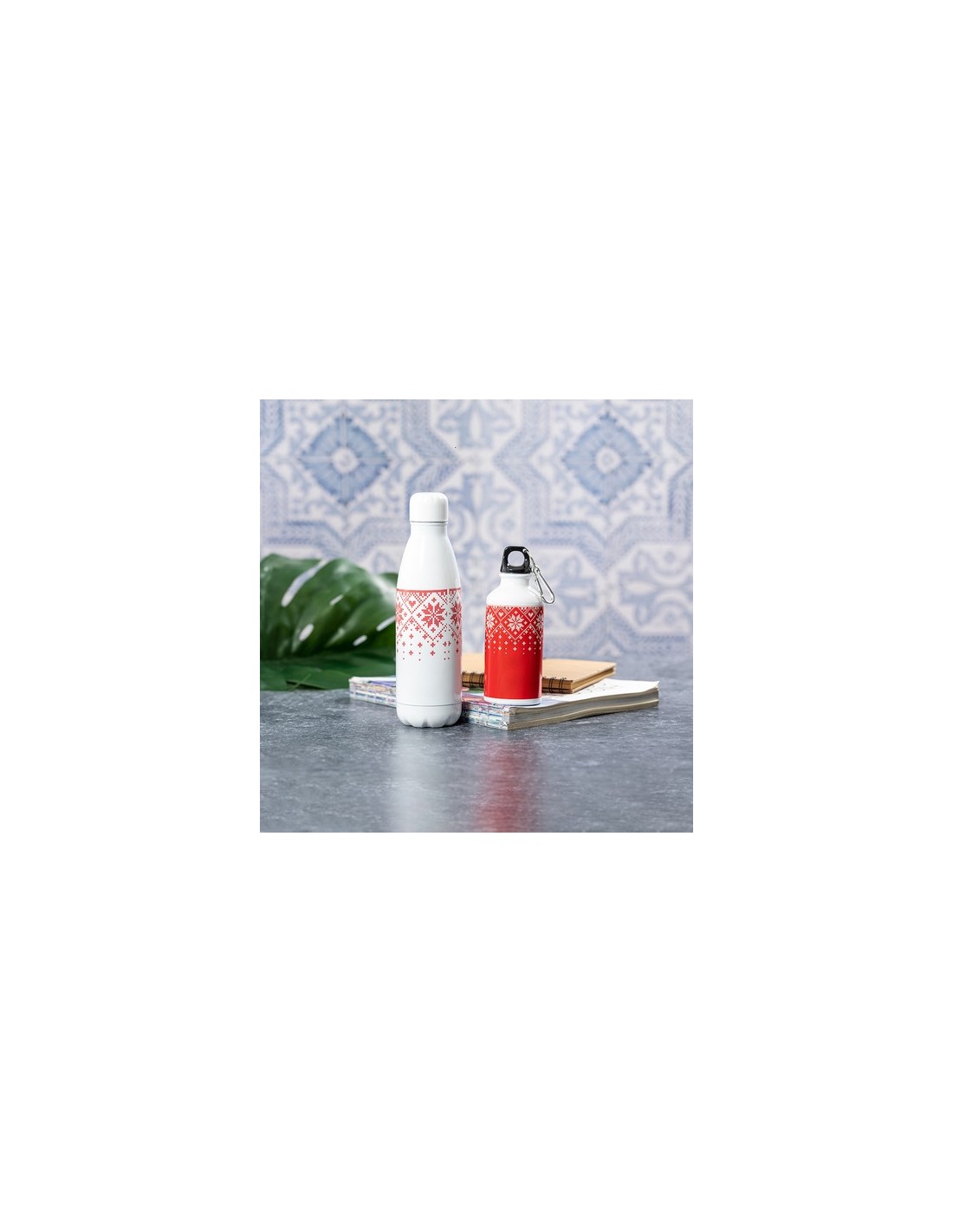 Bidón de 790ml de capacidad con cuerpo de acero inox brillo y diseño bicolor de navidad. Con tapón de seguridad y presentado en atractiva caja de diseño. 790 ml Composition : Acero Inox.