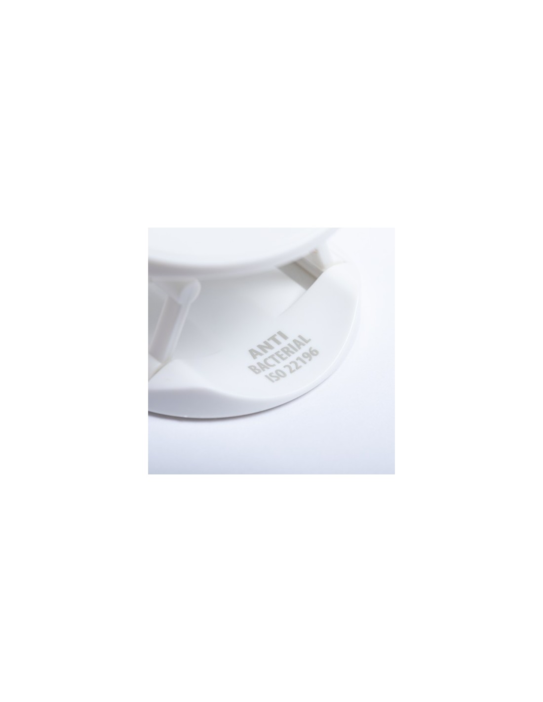 Soporte antibacteriano para smartphone. Diseño plegable en elegante acabado de color blanco, especialmente diseñado para marcaje en tampografía. Con adhesivo 3M, de fijación extra fuerte y libre de residuos al despegarlo del dispositivo.Los productos con tratamientos antibacterianos son capaces de reducir drásticamente las cargas bacterianas presentes en las superficies de los materiales, gracias a la incorporación de agentes microbianos permanentes estáticos, con alta efectividad para inhibir y prevenir la contaminación bacteriana.Artículo de acuerdo al estándar ISO 22196, que determina la actividad antibacteriana en materiales plásticos y superficies no porosas, lo que permite conocer la efectividad de inhibición microbiana que tienen los aditivos sobre los objetos tratados mediante una evaluación cuantitativa. Adhesivo