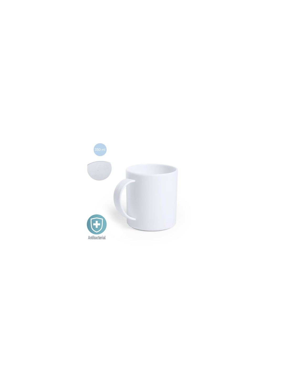 Taza antibacteriana en resistente material PP de acabado sólido y libre de BPA. 350 ml de capacidad, presentada en bolsa individual. Los productos con tratamientos antibacterianos son capaces de reducir drásticamente las cargas bacterianas presentes en las superficies de los materiales, gracias a la incorporación de agentes microbianos permanentes estáticos, con alta efectividad para inhibir y prevenir la contaminación bacteriana. Artículo de acuerdo al estándar ISO 22196, que determina la actividad antibacteriana en materiales plásticos y superficies no porosas, lo que permite conocer la efectividad de inhibición microbiana que tienen los aditivos sobre los objetos tratados mediante una evaluación cuantitativa. 350 ml Composition : PP.
