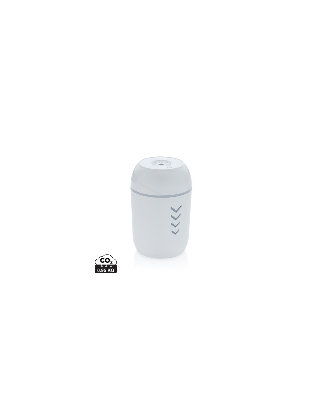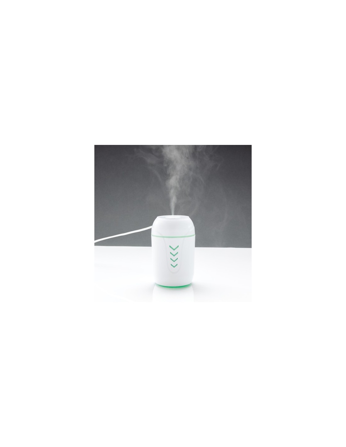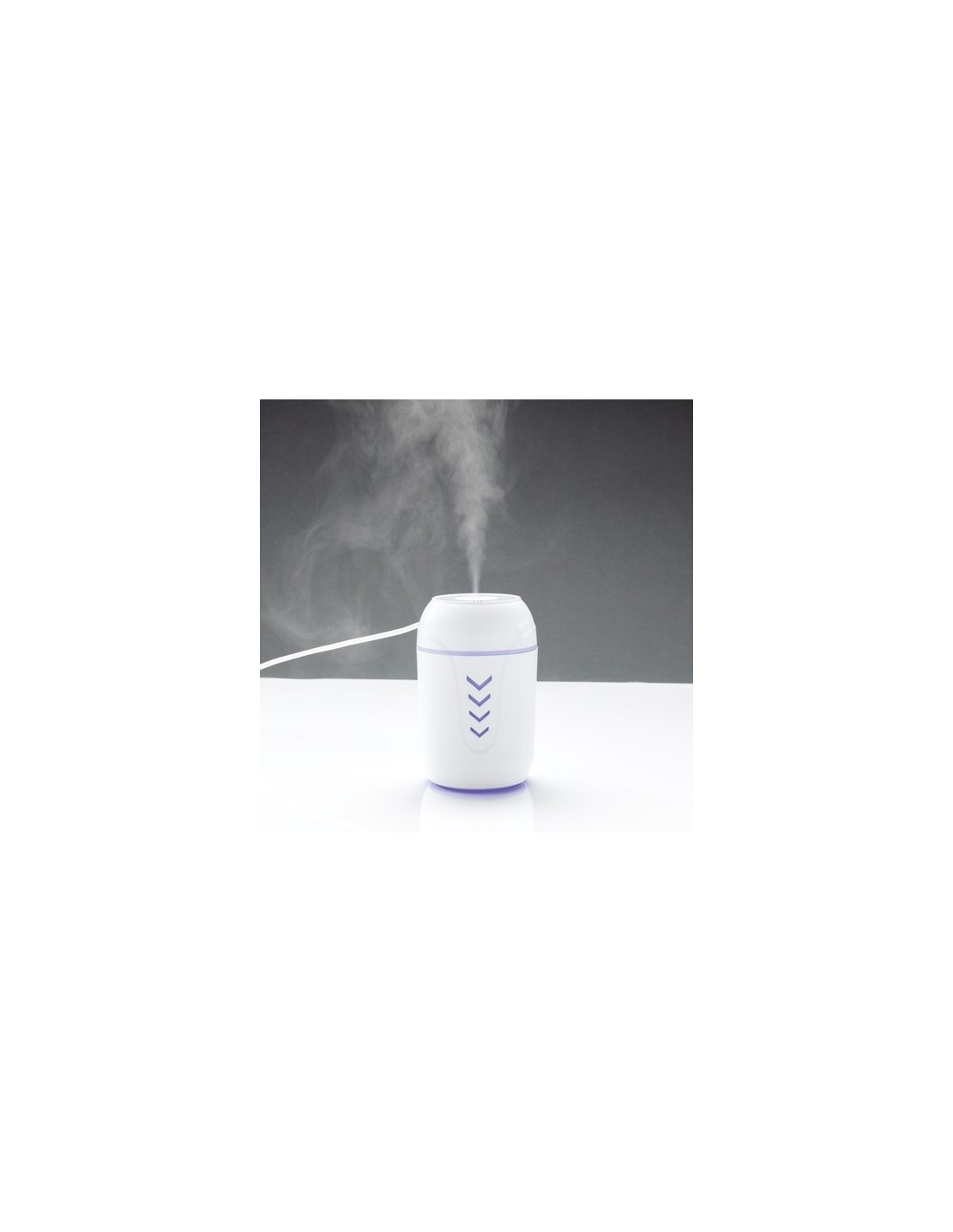 Humidificador hecho de ABS duradero con luz UV-C interna integrada que se verá bien en cualquier mesa. El humidificador producirá neblina para mantener saludable cualquier espacio habitable con una calidad de aire óptima. En invierno se asegurará de que haya menos aire seco y en verano tendrá función de enfriamiento. La boquilla produce muy poco sonido, por lo que incluso es adecuada para usarla de noche. La luz ultravioleta integrada matará hasta el 99,9% de las posibles bacterias dañinas en el agua antes de ser rociada. Incluye 2 bastoncillos de algodón adicionales para reemplazar el original. Una barra de algodón durará hasta 8 meses de uso permanente. Contenido: 200 ml que deben rellenarse después de 4 horas de uso. Longitud de onda UV-C 270nm-280nm. La luz UV-C solo se activará cuando el artículo esté cerrado. Incluye micro cable de carga TPE sin PVC de 120 cm Material : ABS, PP Recycled Content Percent : 0 Conforme directiva Phtalate content, Conforme PAHS content in Reach & ZEK 01-4-08, Conforme directiva de sustancias peligrosas 2011/65/EC & 2015/863, Conforme directiva Electromagnética 2014/30/EU, Libre de parafinas cloradas de cadena corta y media. WEEE Packaging : Bolsa de plástico y caja individual All print codes : Pad Print - Print code default : Tampografía - lado derecho del artículo - 20 x 40 mm - max color : 5 Social Audits : BSCI Total CO2 emissions : 0,95.