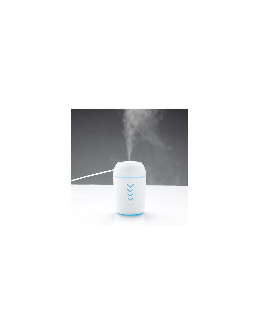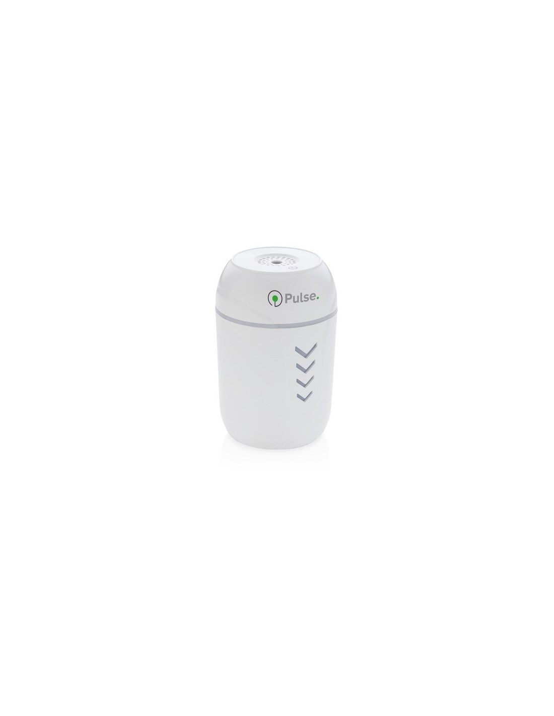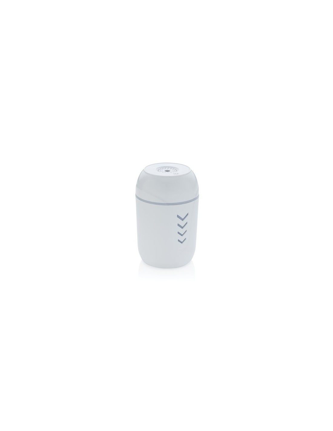 Humidificador hecho de ABS duradero con luz UV-C interna integrada que se verá bien en cualquier mesa. El humidificador producirá neblina para mantener saludable cualquier espacio habitable con una calidad de aire óptima. En invierno se asegurará de que haya menos aire seco y en verano tendrá función de enfriamiento. La boquilla produce muy poco sonido, por lo que incluso es adecuada para usarla de noche. La luz ultravioleta integrada matará hasta el 99,9% de las posibles bacterias dañinas en el agua antes de ser rociada. Incluye 2 bastoncillos de algodón adicionales para reemplazar el original. Una barra de algodón durará hasta 8 meses de uso permanente. Contenido: 200 ml que deben rellenarse después de 4 horas de uso. Longitud de onda UV-C 270nm-280nm. La luz UV-C solo se activará cuando el artículo esté cerrado. Incluye micro cable de carga TPE sin PVC de 120 cm Material : ABS, PP Recycled Content Percent : 0 Conforme directiva Phtalate content, Conforme PAHS content in Reach & ZEK 01-4-08, Conforme directiva de sustancias peligrosas 2011/65/EC & 2015/863, Conforme directiva Electromagnética 2014/30/EU, Libre de parafinas cloradas de cadena corta y media. WEEE Packaging : Bolsa de plástico y caja individual All print codes : Pad Print - Print code default : Tampografía - lado derecho del artículo - 20 x 40 mm - max color : 5 Social Audits : BSCI Total CO2 emissions : 0,95.