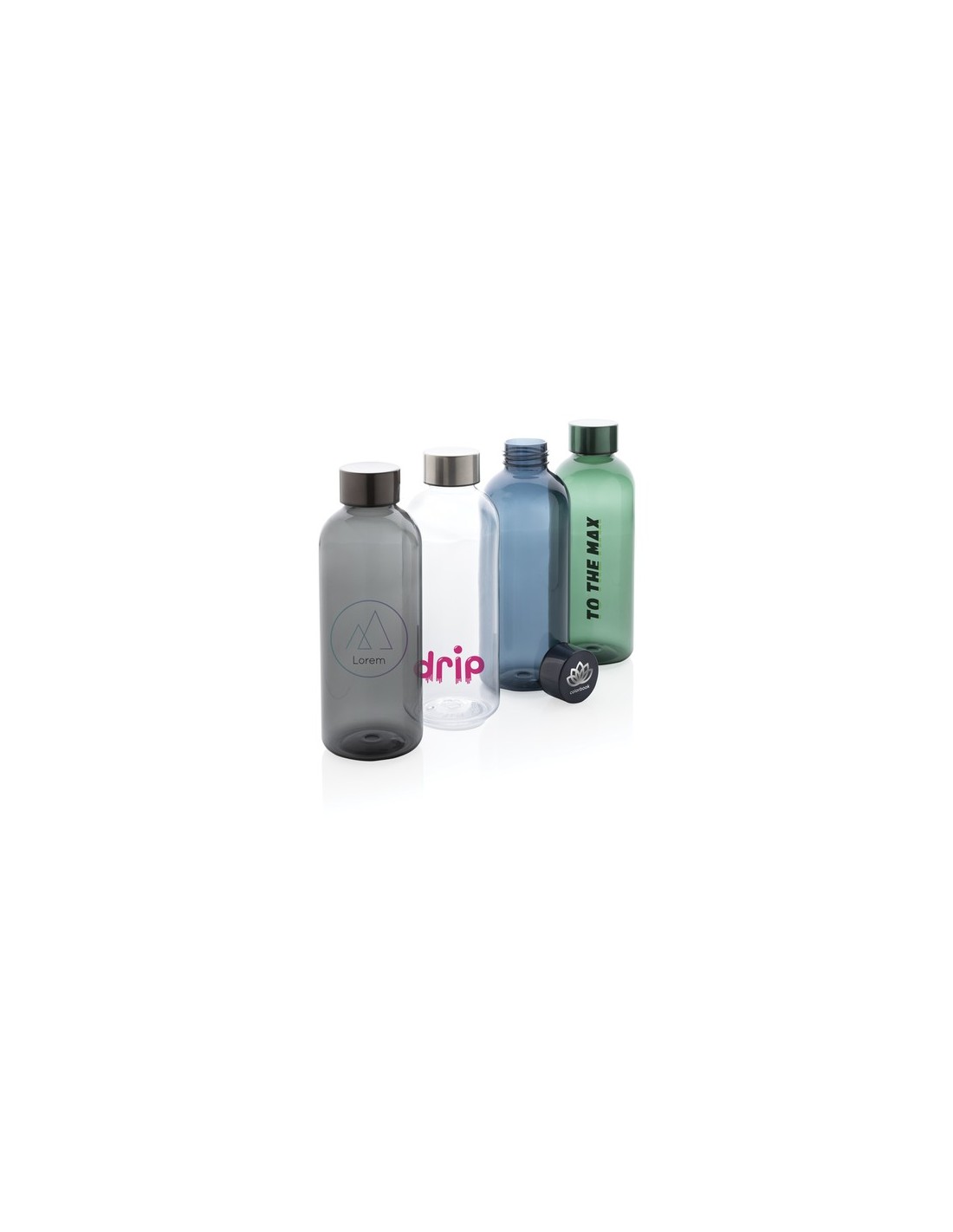 Esta botella de agua a prueba de fugas combina estilo y funcionalidad sin esfuerzo. Con su capacidad de 620ML podrás mantenerte hidratado durante todo el día. La tapa de rosca tiene un hermoso acabado metálico y un cuerpo de color a juego. Solo para agua fría. Sin BPA. Material : Copoliéster de polietileno tereftalato glicol, Acero inoxidable Recycled Content Percent : 0 Sin materiales Bisphenol A, Conforme legislación alimentos Alemania, Conforme directiva Phtalate content, Libre de parafinas cloradas de cadena corta y media. Packaging : Caja de regalo All print codes : Pad Print Drinkware,Digital round 360-2,Doming,Laser Engraving 3 - Print code default : Tampografía - parte frontal en medio - 25 x 60 mm - max color : 5 Social Audits : BSCI Total CO2 emissions : 0,67.