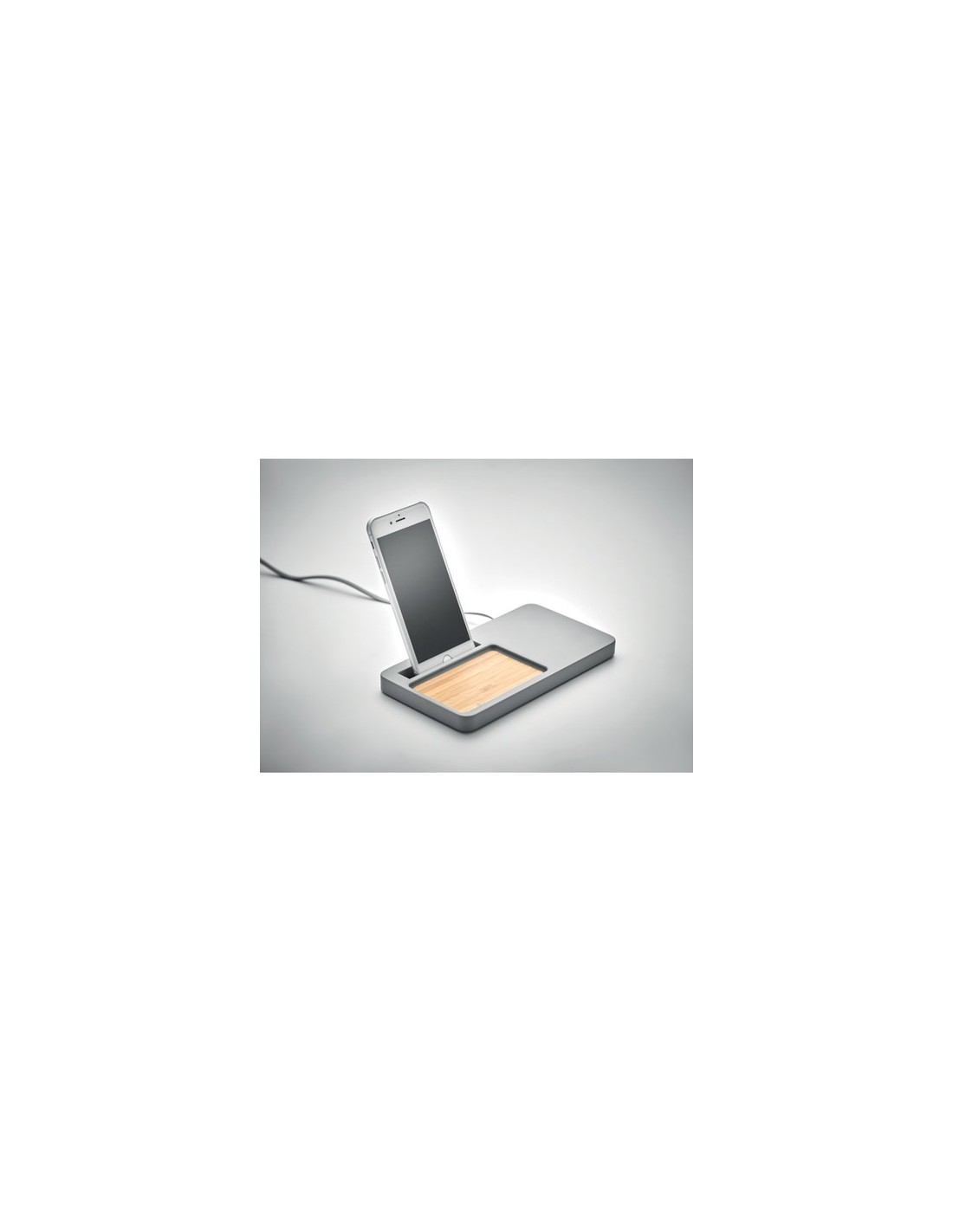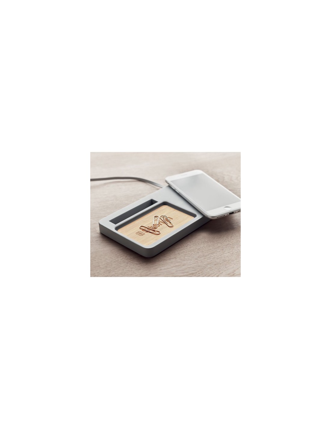 Set de sobremesa de cemento de piedra caliza y bambú con cargador inalámbrico. Incluye cable USB de 100 cm. Salida DC5V/1A (10W). Compatible con todos los dispositivos habilitados para QI, últimos Android, iPhone® 8, X y más nuevos. El bambú es un producto natural, puede haber ligeras variaciones en el color y el tamaño por artículo, lo que puede afectar el resultado final de la impresión.