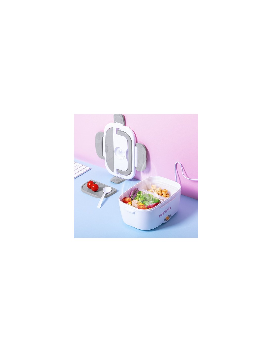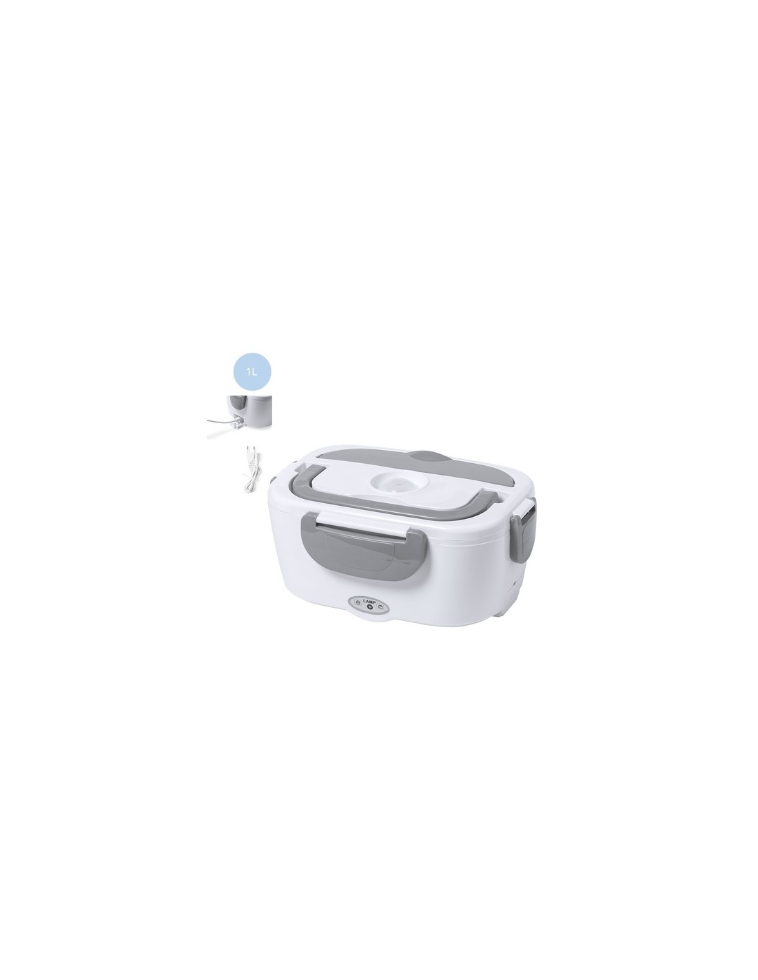 Fiambrera eléctrica de 1l de capacidad . Fabricada en resistente ABS libre de BPA y en diseño bicolor. Incluye práctica asa de transporte y tapa hemética con cierres de seguridad laterales. 2 compartimentos principales y compartimento auxiliar con cierre hermético. Cuchara incluida, con cable de alimentación para enchufe europeo. Ideal para calentar la comida en la oficina. Presentada en atractiva caja de diseño. 1 L Composition : ABS.