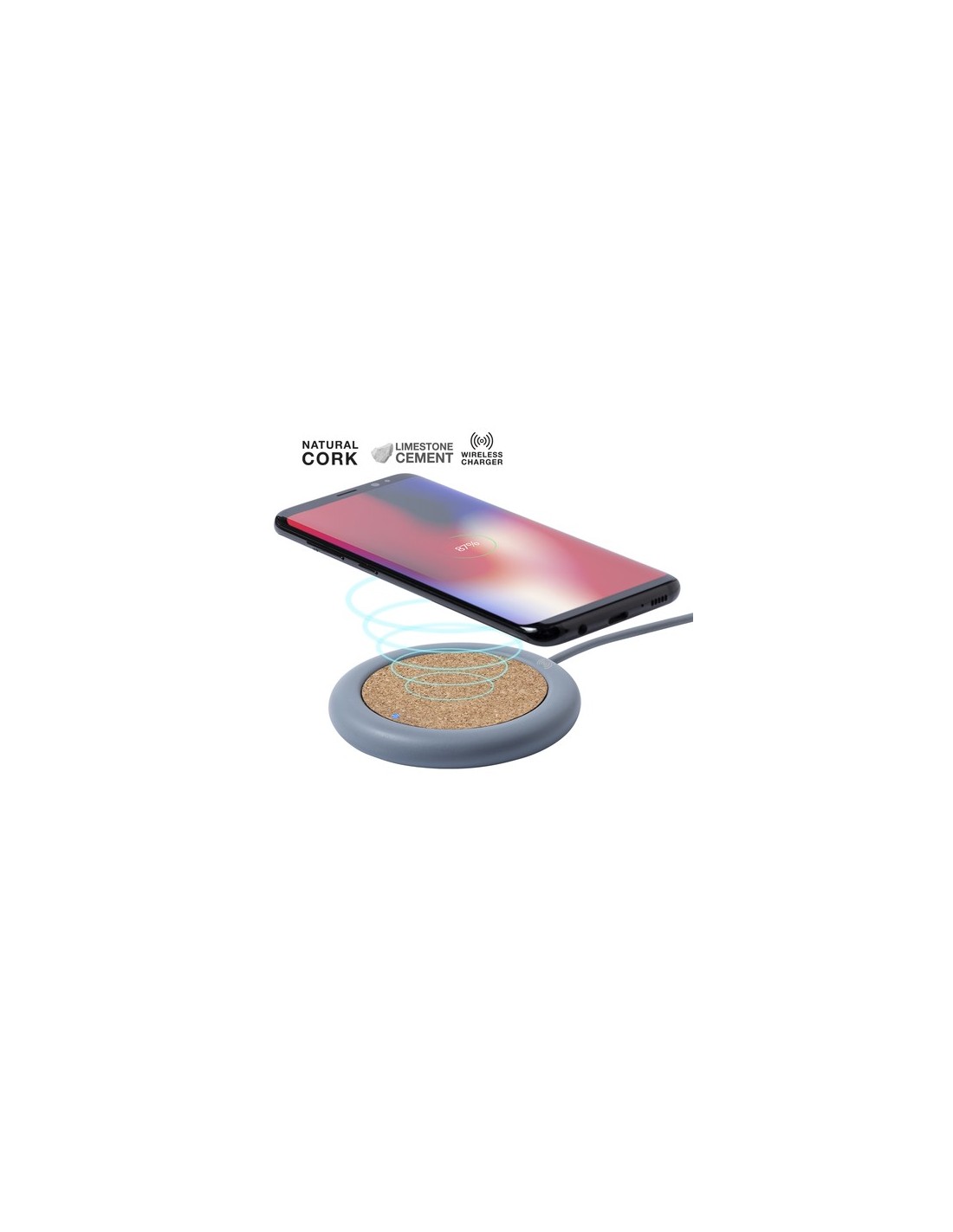 Cargador inalámbrico 5W de línea nature y diseño circular, en combinación de corcho natural y cemento de piedra caliza, un conglomerante formado por la mezcla de materiales naturales, principalmente piedra caliza molida y agua, obteniendo un material de gran consistencia y durabilidad. Indicador led y cable de carga USB a juego de 1m de largo. Compatible con dispositivos equipados con tecnología de carga inalámbrica. Protección de seguridad para evitar sobrecalentamiento, sobrecarga y cortocircuito. Presentado en atractiva caja de diseño eco. Inalámbrico 5W Composition : Cemento Calizo/ Corcho.