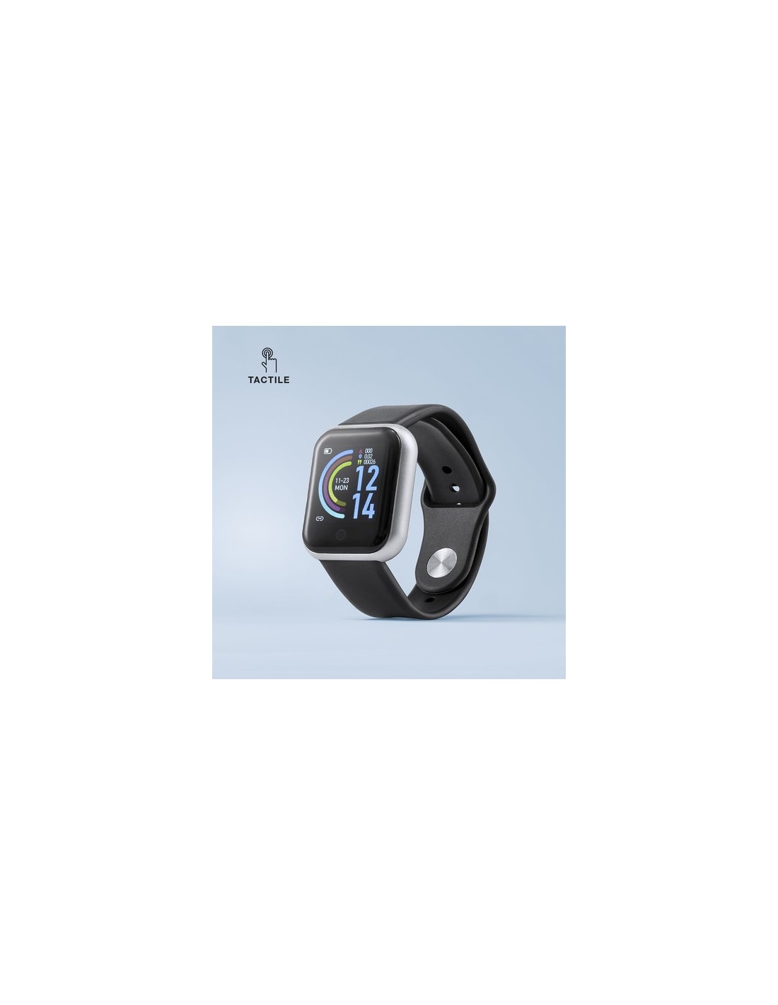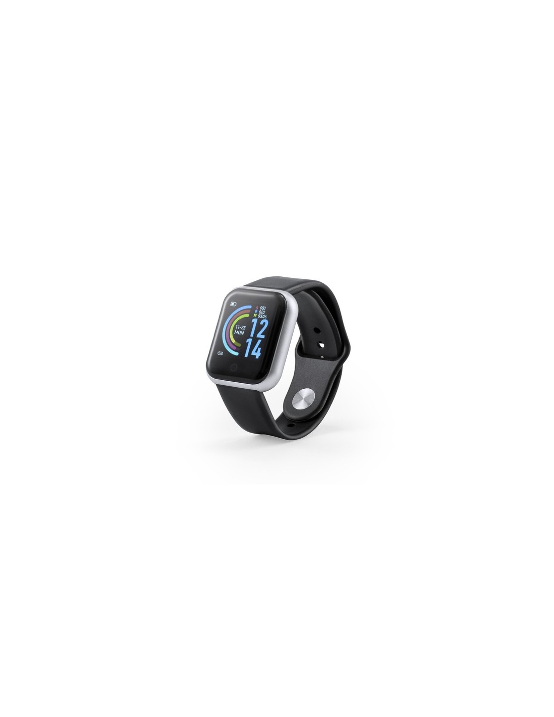 Reloj inteligente multifunción de diseño casual, con conexión Bluetooth. Elegante caja con correa en material TPU y pantalla LCD táctil integrada de 1,44 pulgadas, que lo convierten en el gadget perfecto para todo tipo de actividades deportivas, de ocio y para el día a día. Con funciones monitor de frecuencia cardíaca, presión arterial y oxígeno en sangre, monitor de sueño, cámara remota, alarma, antipérdida y podómetro. Resistente a salpicaduras de agua, con APP disponible para iOS y Android. Presentado en atractiva caja de diseño. Disponible manual de instrucciones en español e inglés. Conexión Bluetooth. Pantalla LCD 1,44". Batería 50 mAh Composition : Correa TPU.