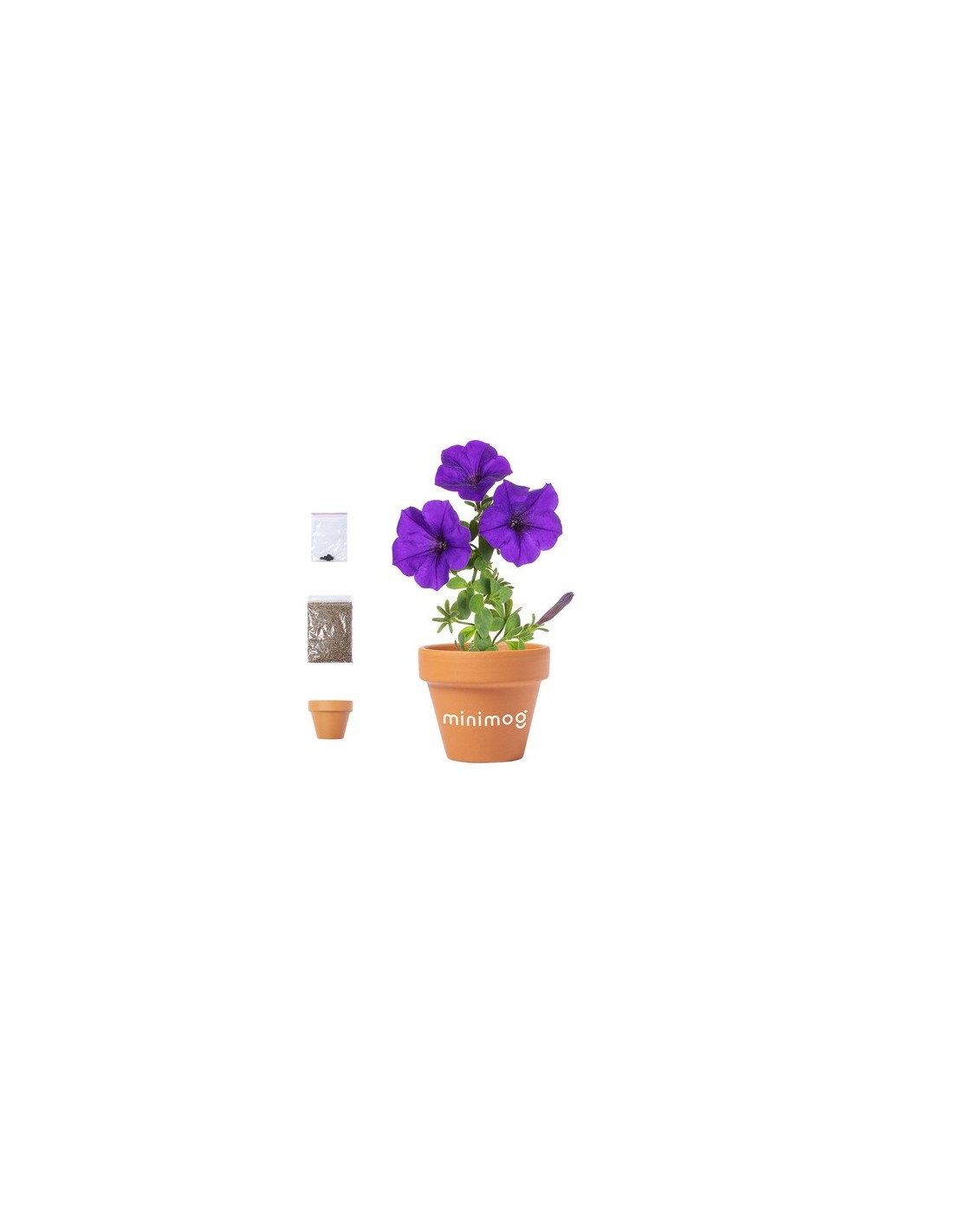 Maceta con flores de petunia. Incluye macetero fabricado en resistente terracota con agujero de drenaje + 5-8 semillas de petunia, con bolsita de sustrato para un correcto crecimiento. Disponible manual de instrucciones en español e inglés. 5-8 Semillas de Petunia Incluidas. Flores Colores Surtidos Composition : Terracota.