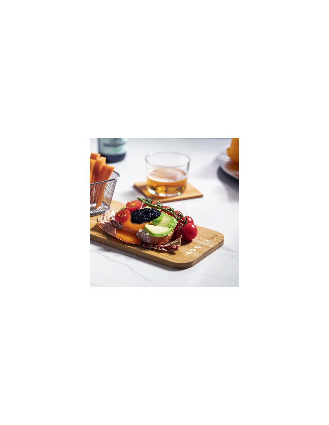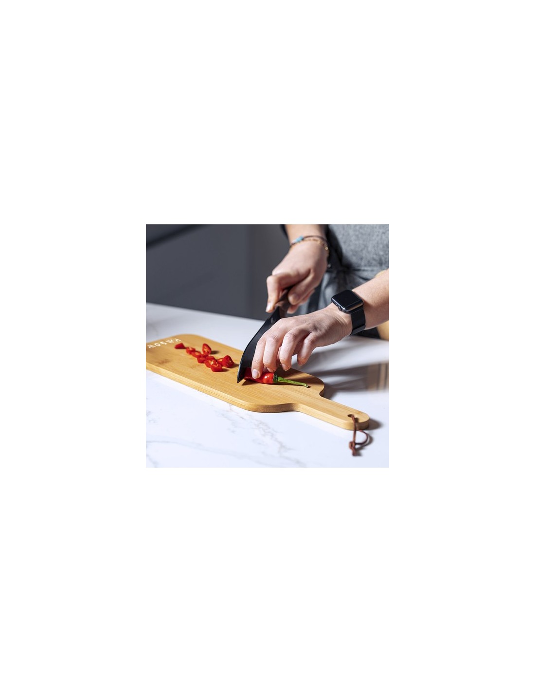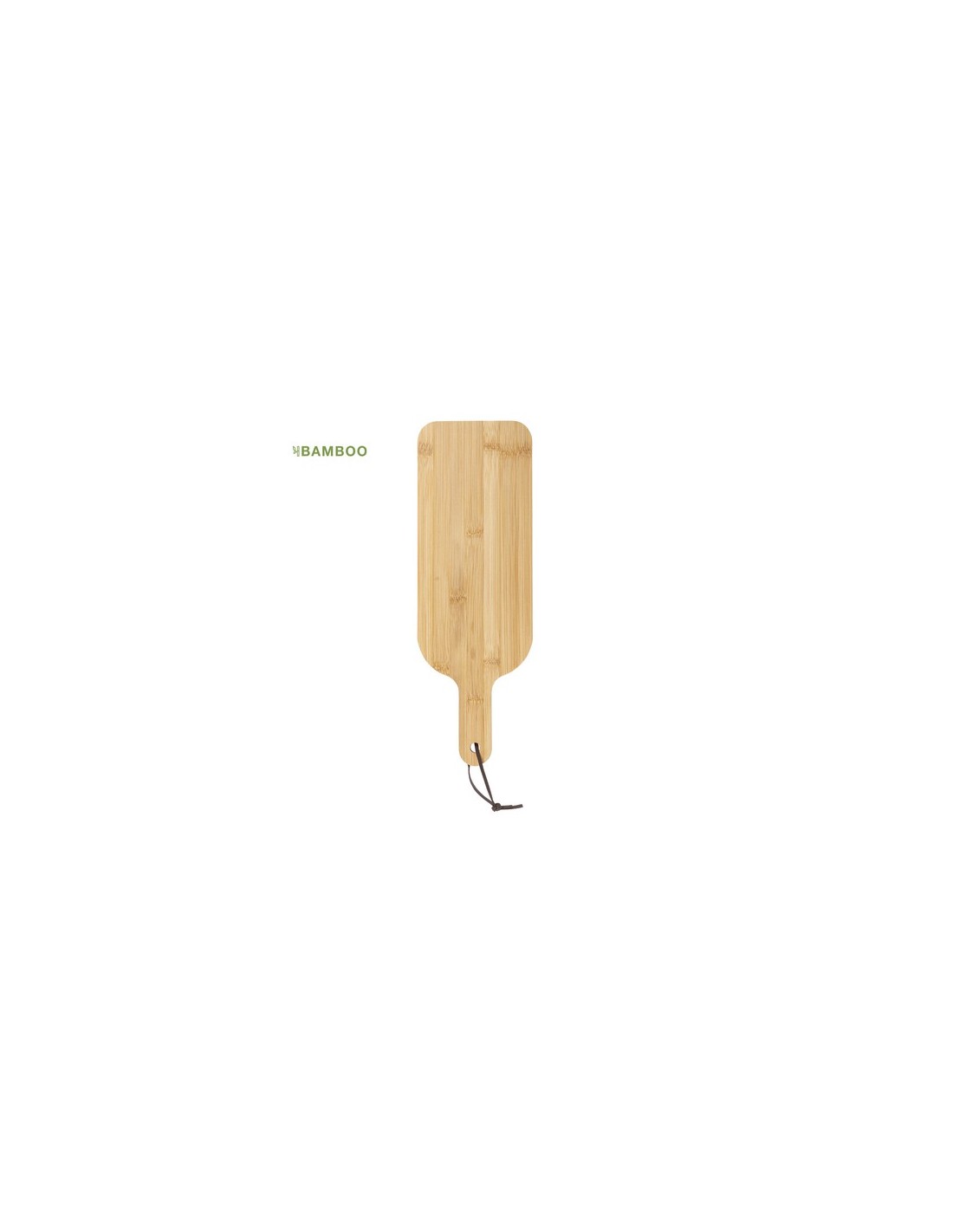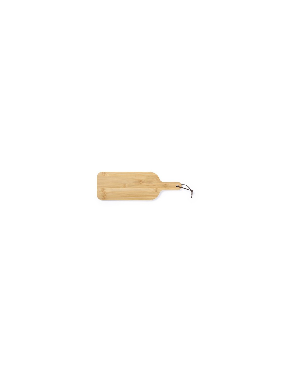 Tabla fabricada en bambú, de suave y resistente acabado pulido. Ideal para corte y presentación. Con asa para fácil manejo y cordón para colgar en símil piel. Composition : Bambú.