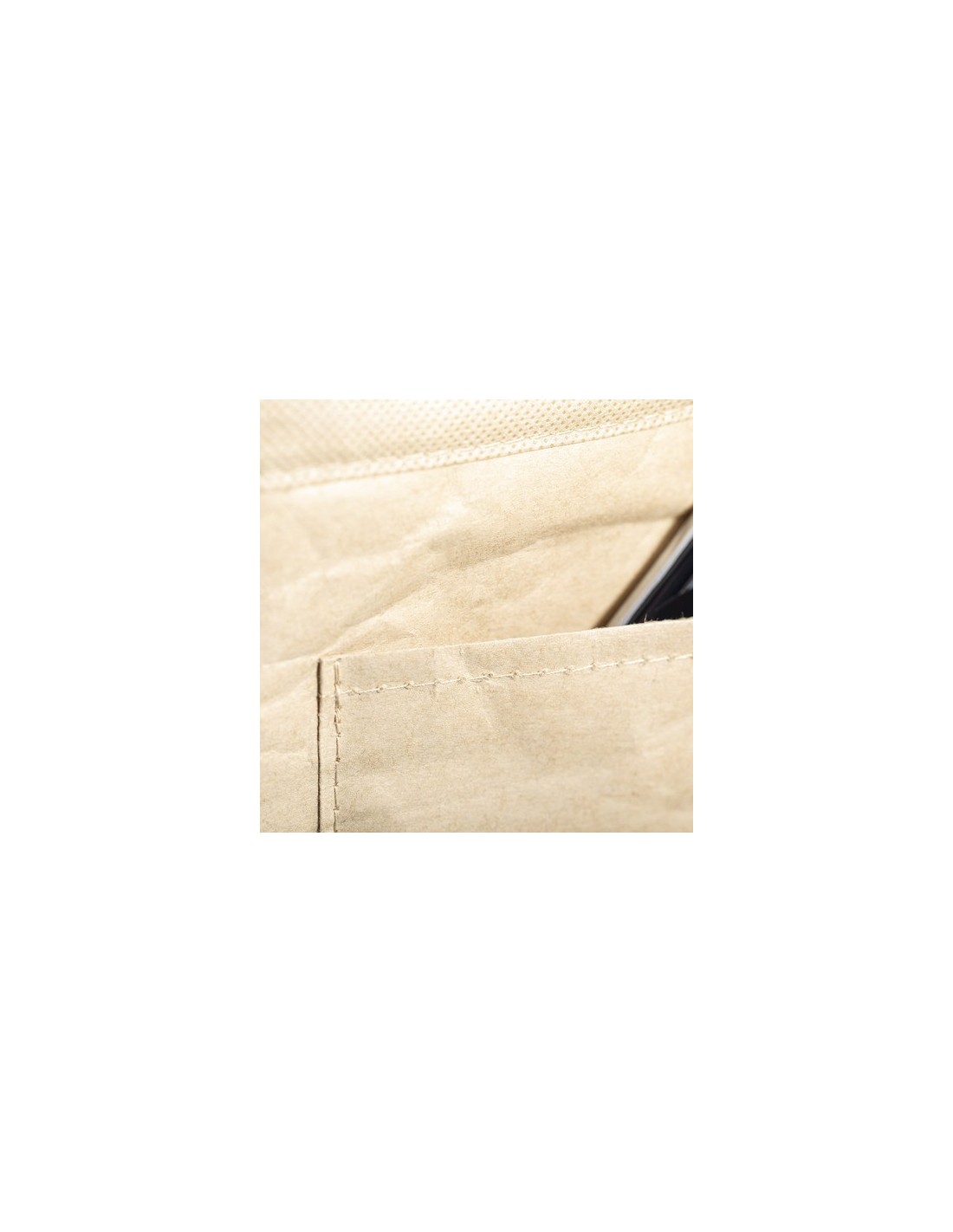 Nevera de línea nature con capacidad para 6 latas. Fabricada en papel laminado resistente a la humedad, con interior isotermo acabado en aluminio. Cremallera y asa de transporte a juego, con bolsillo exterior para marcaje. Composition : Papel Reciclado Laminado/ Aluminio.