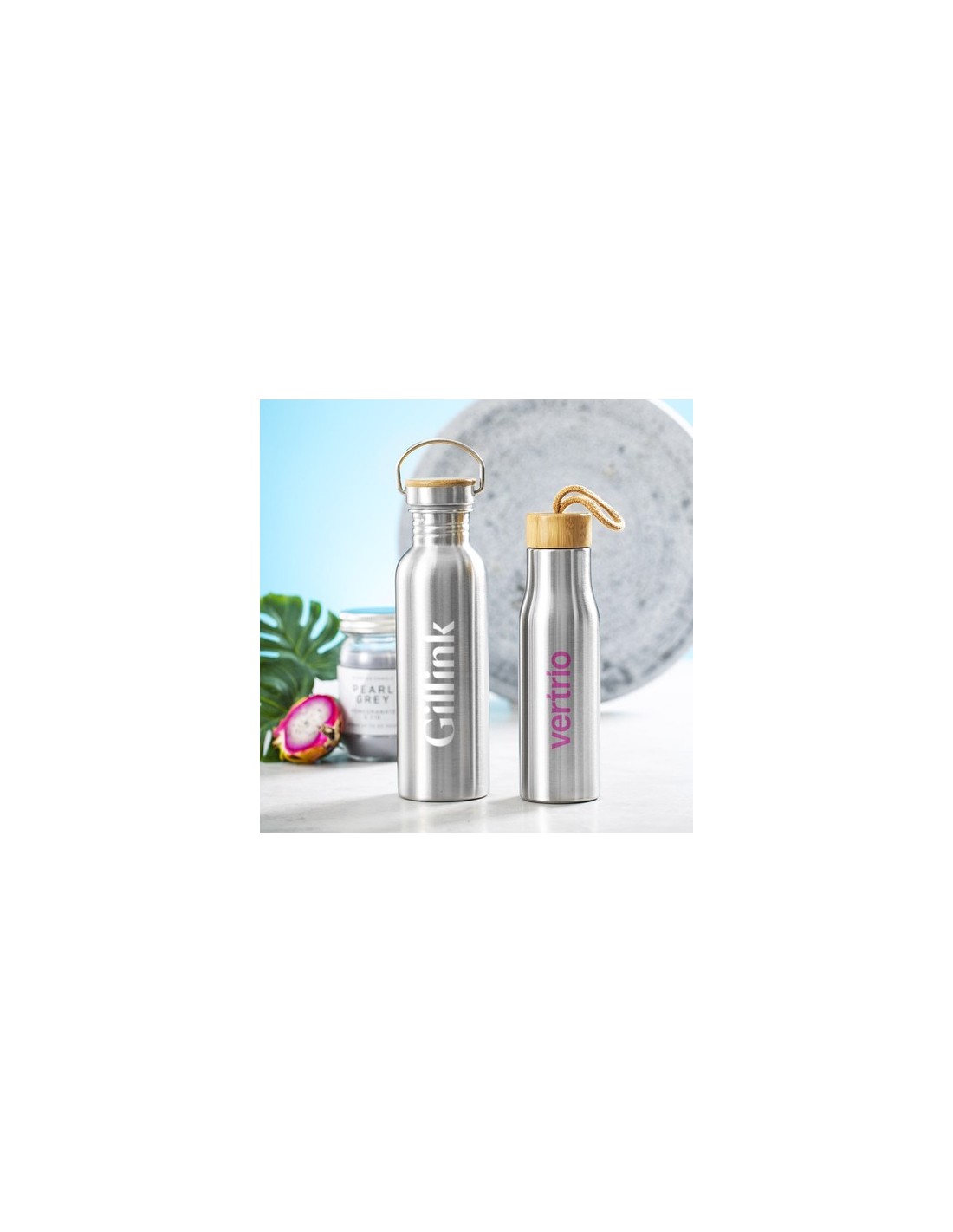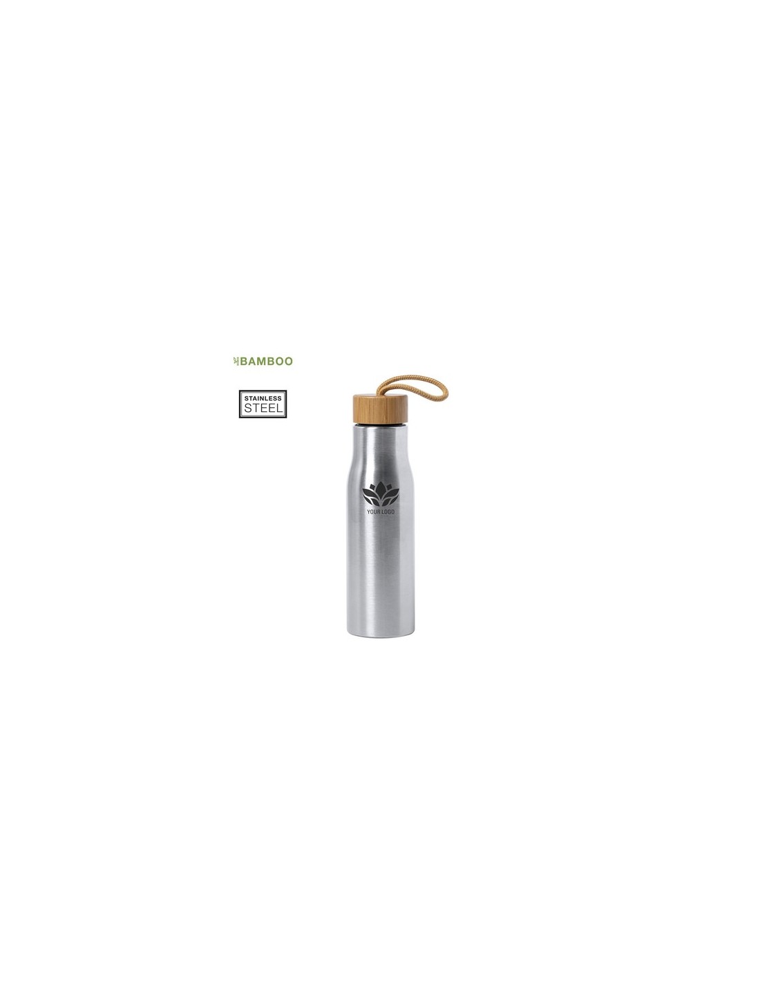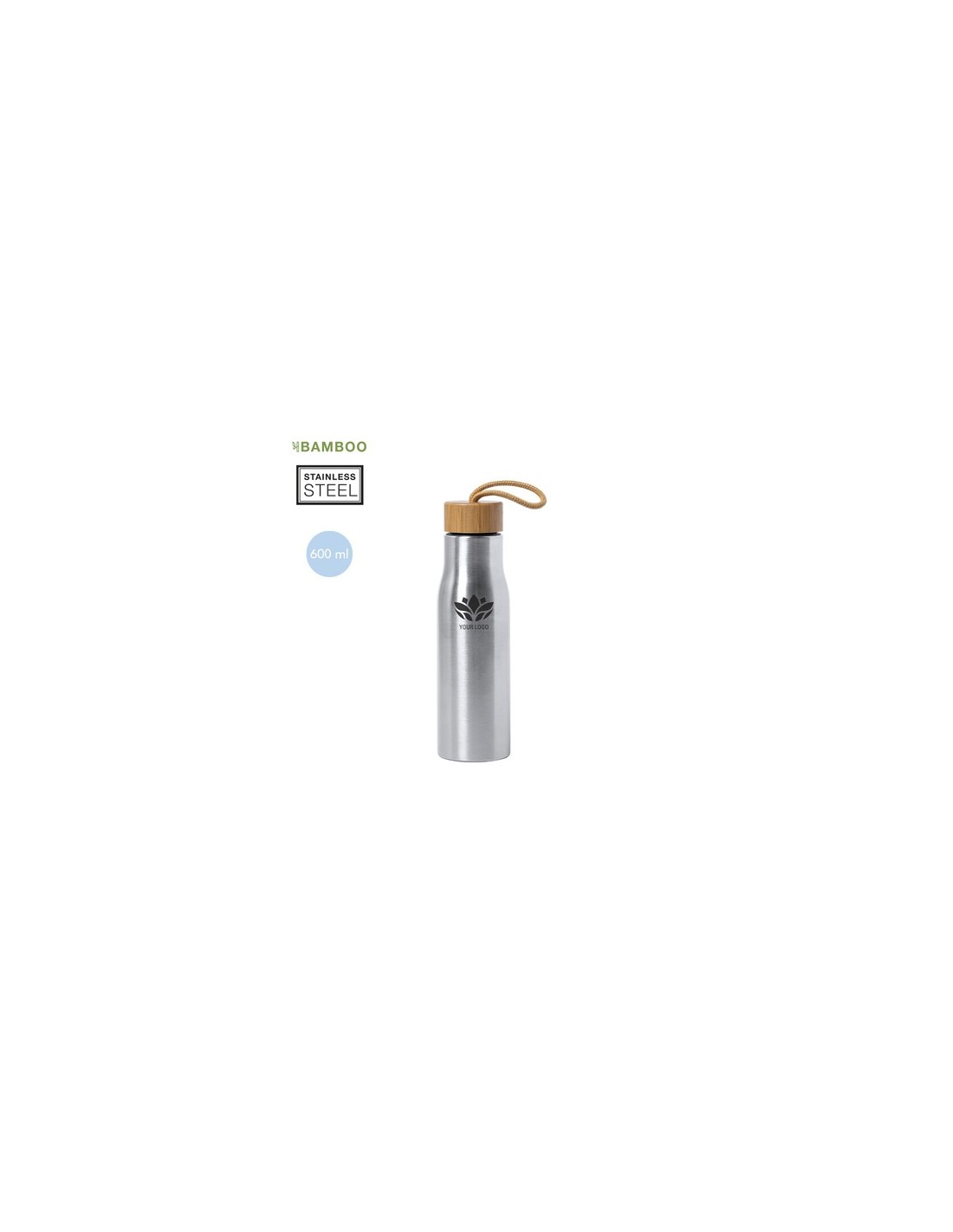 Bidón de línea nature y 600ml de capacidad. Cuerpo fabricado en acero inox y tapón en bambú con cinta de transporte. Libre de BPA y presentado en atractiva caja de diseño eco. 600 ml Composition : Acero Inox/ Bambú.