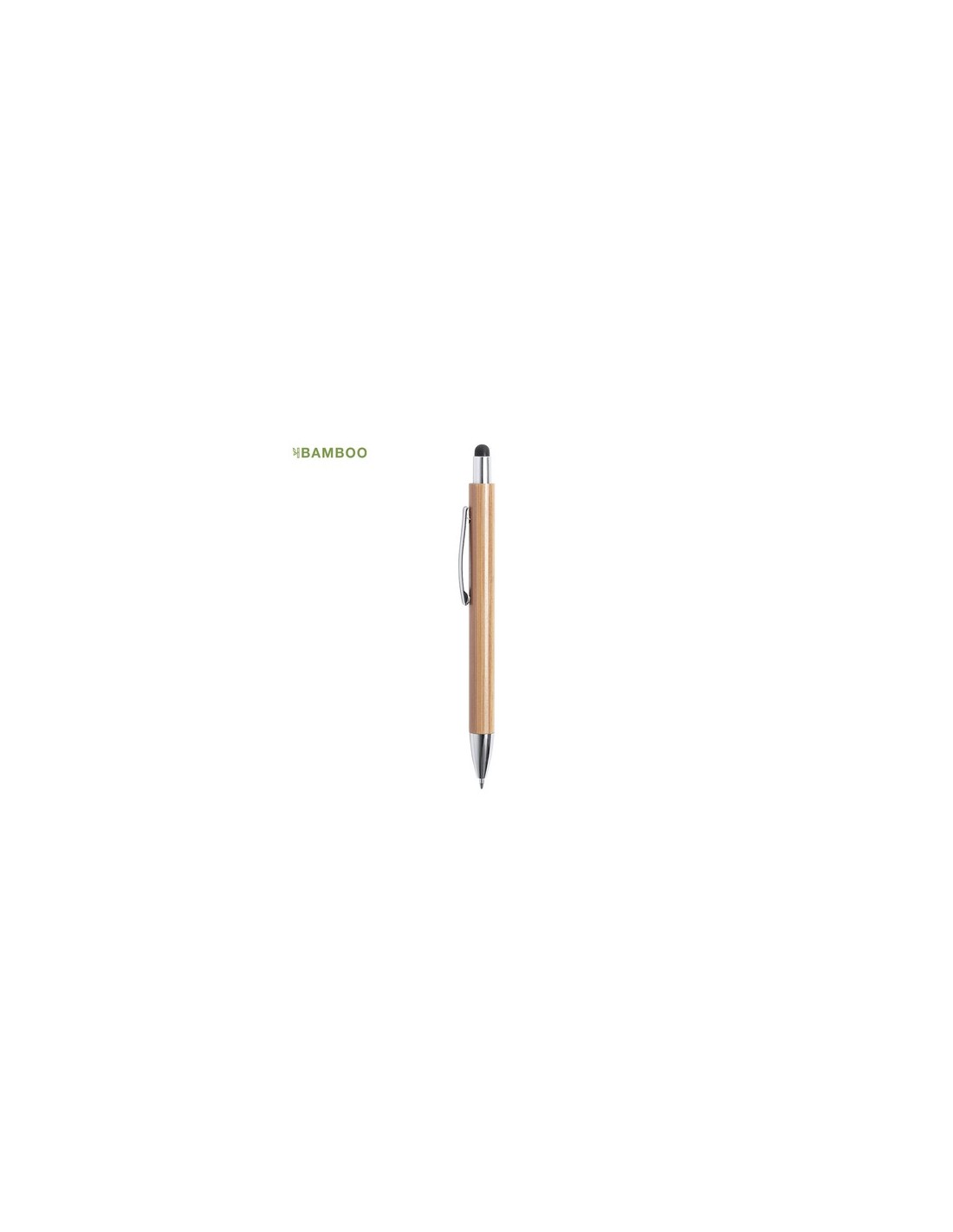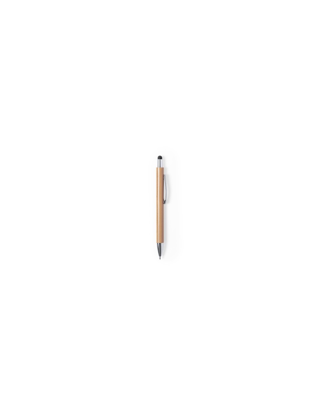 Bolígrafo puntero de línea nature, con cuerpo en bambú y accesorios cromados, con puntero en negro. De mecanismo pulsador, clip metálico y cartucho jumbo con tinta azul. Carga Jumbo Composition : Bambú.