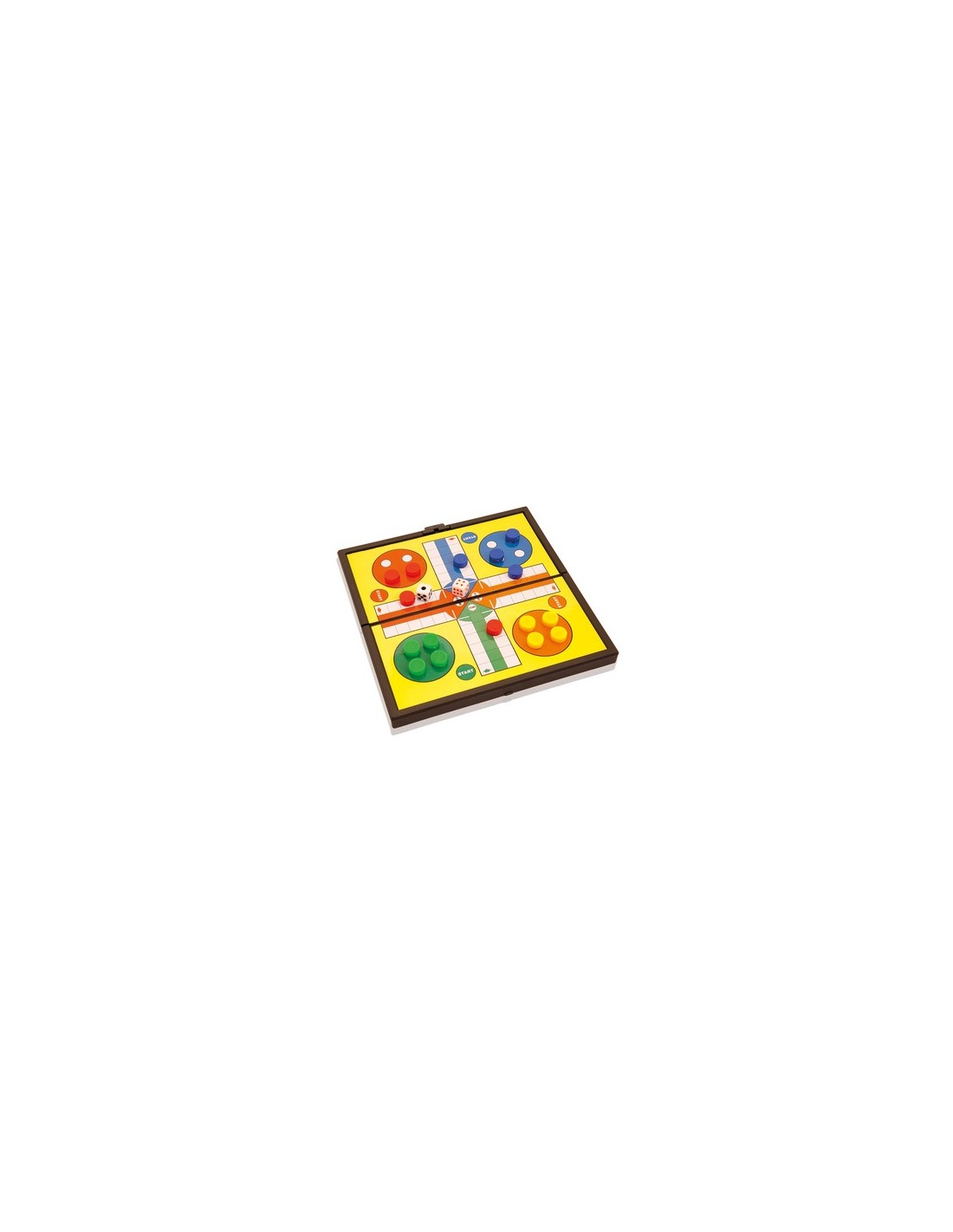 Juego de mesa plegable con superficie metálica y fichas magnéticas. Disponibles parchís, tres en raya y damas. Presentado en caja individual. Magnético