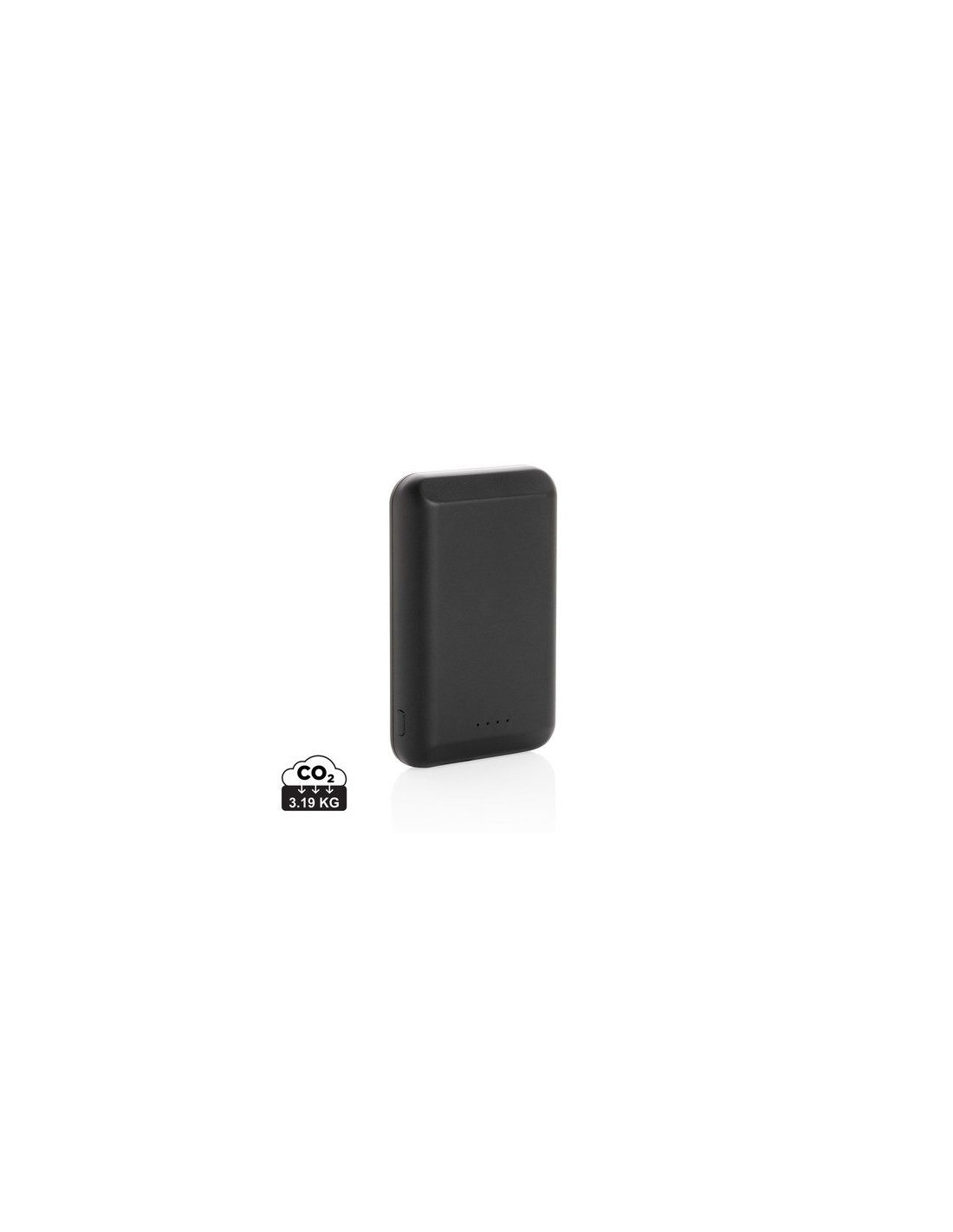 Coloca este powerbank de carga inalámbrico magnético en la parte posterior de tu Iphone 12 para cargar tu dispositivo. Los imanes están perfectamente alineados para garantizar siempre la posición de carga correcta en tu teléfono. El cargador inalámbrico de 5W es compatible con todos los dispositivos QI (Iphone 8 en adelante y dispositivos Android), por lo que en otros teléfonos se puede utilizar como un cargador inalámbrico normal. Para cargar mediante cable, el powerbank ofrece una salida USB (2A) Incluyendo un cable TPE tipo C de 35 cm. Artículo y accesorios sin PVC. Entrada tipo C 5V/2A; Salida USB: 5V/2A; Salida inalámbrica 5V/1A 5W; 17 imanes N52H resistentes al calor de alta calidad integrados. Material : ABS Recycled Content Percent : 0 Protección contra sobrecarga, Protección contra sobrecorriente, Protección contra cortocircuito, Control de temperatura, Componentes duraderos y de alta calidad, Una corriente en reposo máxima de 0,3 W cuando no se utiliza, Libre de parafinas cloradas de cadena corta y media., Conforme directiva seguridad baterias Alcalinas EN62133, Conforme directiva Phtalate content, Conforme PAHS content in Reach & ZEK 01-4-08, Conforme directiva de sustancias peligrosas 2011/65/EC & 2015/863, Conforme directiva equipamientos Radio y Telecomunicaciones 2014/53/EU, Detección de objetos extraños WEEE Battery : 1 Li-poli - 45 g. Packaging : Bolsa de plástico y caja individual All print codes : Pad Print,Digital Print 2 - Print code default : Tampografía - parte frontal del artículo - 35 x 60 mm - max color : 5 Social Audits : BSCI Total CO2 emissions : 3,19.
